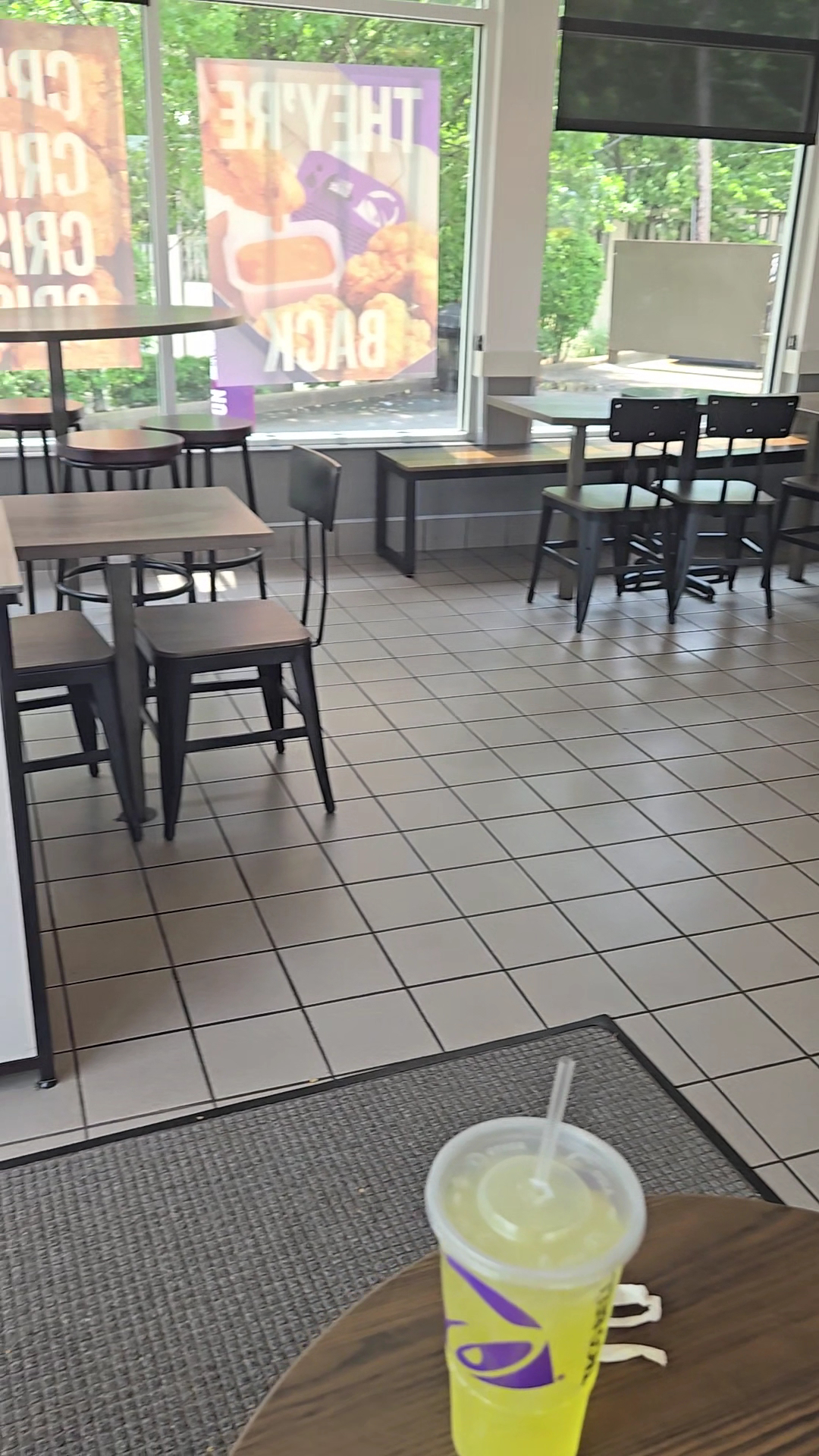 Read moreI very rarely leave a review of a business if it's less than five stars, typically I do not return. Some businesses are so bad, it requires warning the public , so to speak, in order to prevent them from experiencing the debacle. Take this location of TacoBell, the dining floor is locked to the public. We were used to this from recent experience ( read covid). However, this location does not warn you with signage to keep you from exiting the vehicle only to pull on the "door of disappointment". More over, if you are burdened with difficulty walking/standing, the lack of signage adds insult to your injury. To highlight the problem further, the wait in the drive-thru is almost thirty minutes. Imagine placing an order, being pinned in line with no easy escape, needing to use the facilities, and a thirty minute drive-thru wait. I was however, thrilled initially to see the employees delivering orders to customers in the parking lot, only to later come to realize it is a service reserved only for friends or family. Do yourself, and your family, a favor and go get your tacos at...
