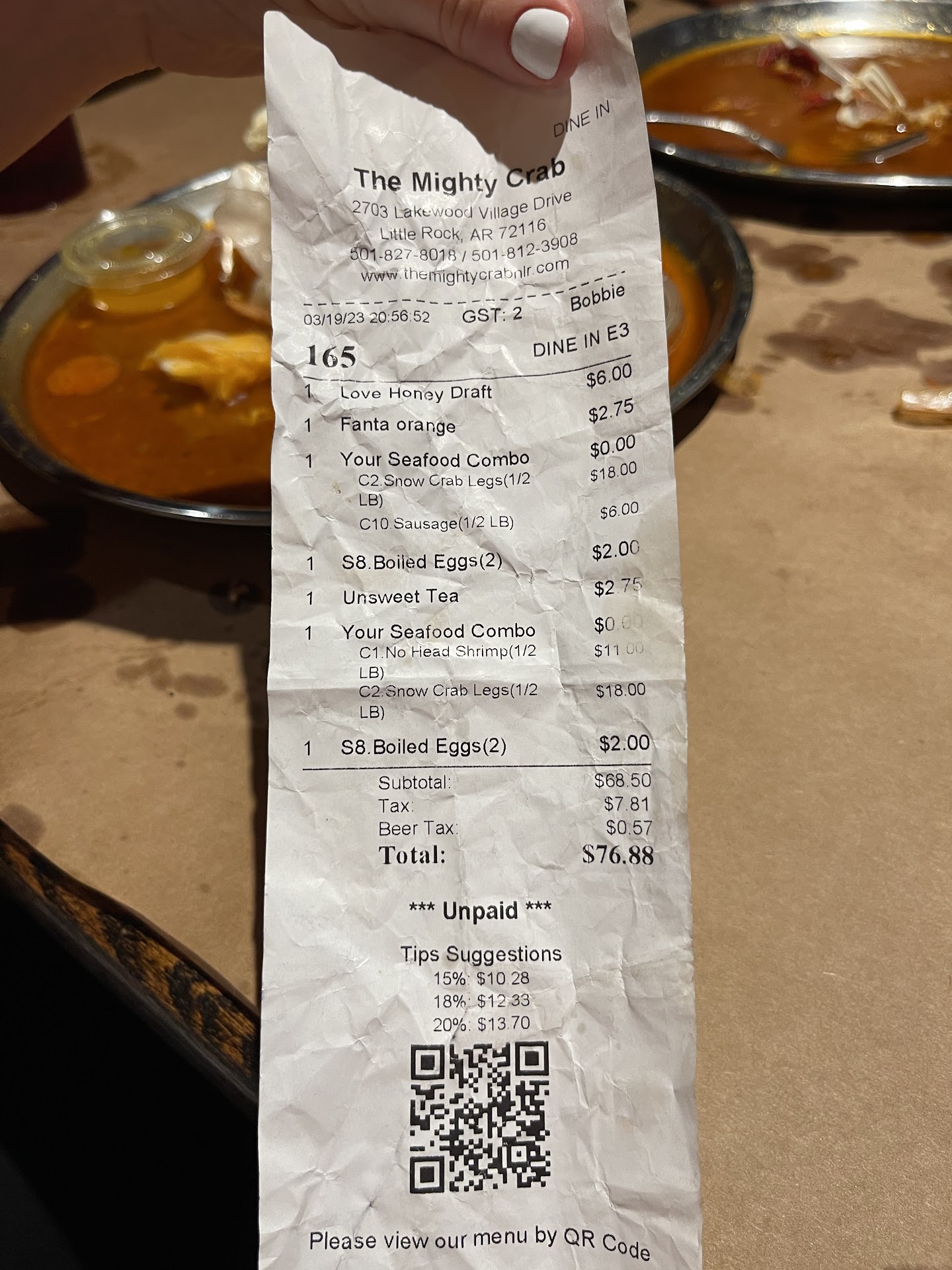 Read moreWell the food was good, service not so much. First they charged a 18% gratituity because we had 6 people in our party. One of which was a 2 year old who only shared from out plate ( 2 french fries if that). Then when I ordered I asked for half pound shrimp and half pound calimari. I asked if I could have then two different flavors or if that would be an issue. Our server assured us it would be fine they would just come out in separate bags. Then when they bring it to our table I did not receive the potatoes and corn that is suppose to come with it. I asked the server if I could get it and she says well I didn't get it because of they way they wrote down the ticket two different kinds . I was like ok. They never offered to gemake it right and was just like I wrote it down wrong I still don't get it. Anyways didn't get a refill on our drinks until we were already through eating. Servers disappeared once our food was out and barely came by. They weren't even very busy only maybe 5 other tables of people. I had high hopes for this place as I have been to the one in Conway and it was great. This location is lacking to...