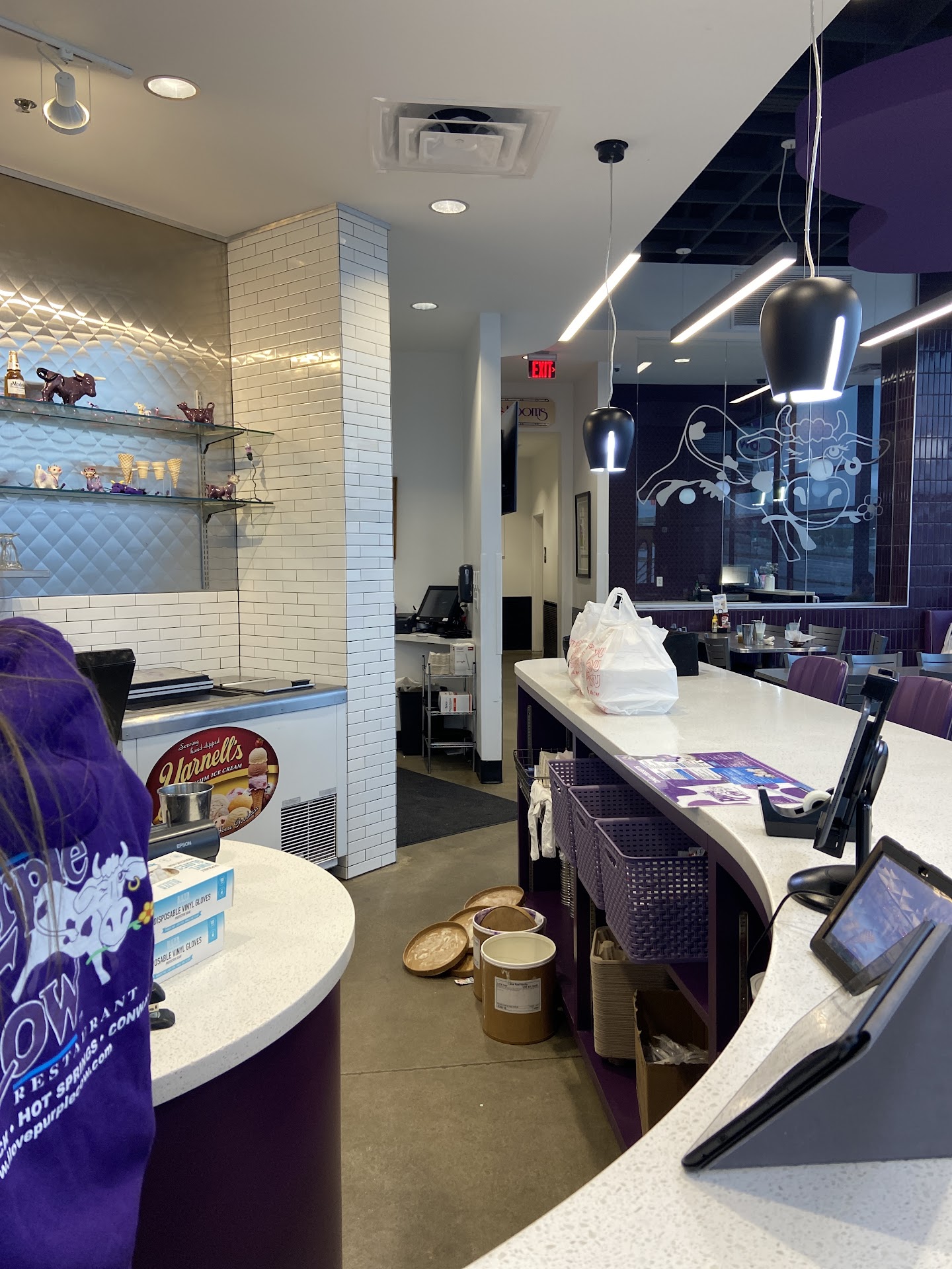 Iām originally from Arkansas but currently live in Oklahoma and purple cow is one of my child favorites. We are on a family road trip to Mississippi so we stopped so I could have my kiddos and spouse experience a piece of my childhood. We ordered the kids meal first and that came super fast. I order a turkey ham and bacon sandwich plain with a side of chips , but when it came out it had mayonnaise on it, the waitress explained she originally told the kitchen plain but they messed it up, by the time the food was corrected my spouse had finished his plate and my kids had eaten what they would from thereās. So we asked for a to go box right then. We loaded up the kids in the truck and realized we left the to go boxes on the table. My spouse went in to grab them and they told him they threw it away already. In the Togo boxes was a good portion of a kids chicken strip meal and majority of the fries and in the other was my entire meal minus a bite of the sand which and all my side of chips. They said they would only remake my order. They didnāt even give me chips just remade the sandwich. And the only reason the meal had to be to go IN THE FIRST PLACE was because it was initially made incorrectly and took to long to remake. So I paid $50 and tipped 20% to not even have half the food that I paid for because they trashed it. Let me add insult to injury Iām also 7 months pregnant and currently do not play about my food. Customer...