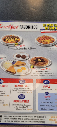 Read moreMe and my guy ate here the morning of Oct 11th. The food was of usual Waffle House quality. Everything came out timely. My server was not friendly and was unapproachable from the moment we walked in the door. I literally walked in and just by the look on her face thought "I hope that's not out server." She was a tiny girl who's name maybe started with an "S". She never introduced herself or even said "hello" or "good morning". Never smiled. I even heard her refusing to help out the team b/c "What if it's not my waffle?" I've worked restaurants for years and it doesn't matter if it's your final table, if your last three tables stiffed you, or even if you just don't want to be there... It's literally customer service and attitude is everything. We shouldn't feel like a burden when we're paying you... We still tipped of course because I have served before, but I honestly didn't feel like she deserved it and if my guy hadn't stopped me I would've talked to the manager about her attitude. Everyone else seemed really friendly though and we even had a couple other servers stop by to...