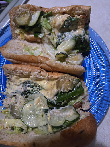I think the AC was either off or broken. It was hotter than 80 degrees in there it seemed like so I didn’t stay to eat. This sandwich was the only thing I ate today and I’m pretty sure I have food poisoning now; my stomach hurts so badly. The gal running the drive thru was setting sandwich ingredients and sauce bottles on the counter where the sandwiches are built. I ordered the cold cut combo sandwich. The bread was so over baked that it was like eating a crouton. (Italian herbs and cheese). I asked if I could get one that wasn’t burned, but most of them were visibly black on top. The Diet Pepsi was getting so much co2 that it took more than 5 minutes to fill my large cup because I had to keep waiting for the fizz to die down. The two gals were nice, but seemed very inexperienced and very overwhelmed with how many orders they got (around 3 pm today). I haven’t had an issue at this location, but I’ve also never seen someone place meat and veggie ingredients like that on the sandwiches building counter at subway rather than just writing down the order on a slip of paper; so it makes me wonder just how much cross contamination...