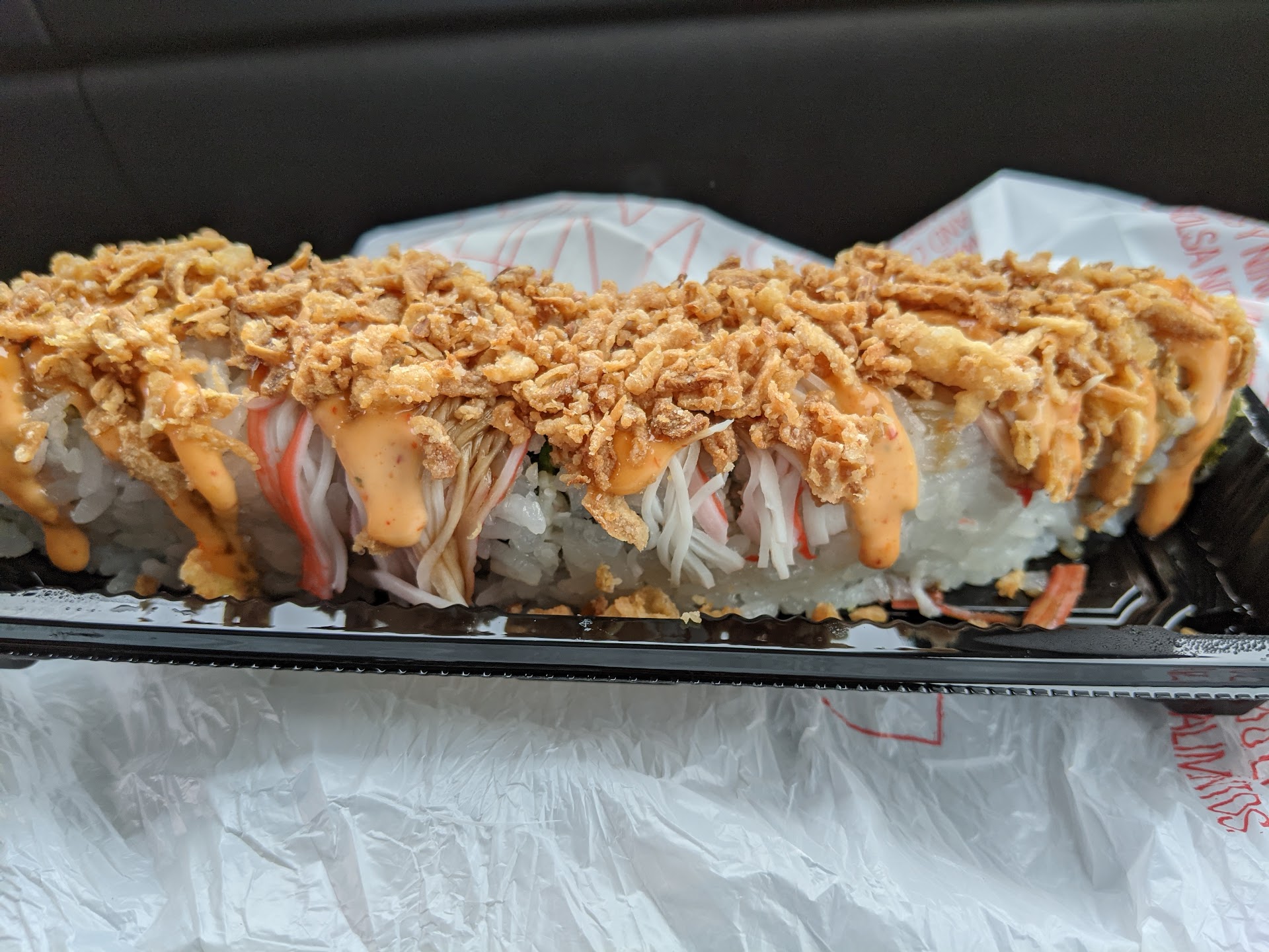 It has kind of a "Mom and Pop" kind of feel to it, the owner is very friendly out and seemed very passionate about his work, and it's actually very good sushi that's beat rolls we've splurged 15$ for before, theres all sorts of fun topping you can get, from fried tofu Inari, to NIgiri, Tuna topped rolls, and unlike those other sushi joints that skimp out on a tiny dime sized roll with a thin sliver of sushi it seemed packed on the inside with all the ingredients. I got some kind of Kalminari Squid roll and it was delicious, they even have local flavors too for the aggies that featured fried onions and squid and a myriad of toppings, California rolls, exotic foods, etc,...
