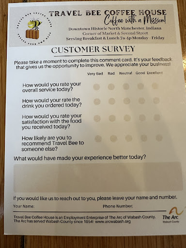 Read moreTravel Bee Coffee House is a 501c3 nonprofit venture of the ARC of Wabash County. What a fantastic addition to the Manchester community! The food is great and the coffee is fantastic! If you're traveling through or looking for a new place for breakfast or lunch, I'd HIGHLY...