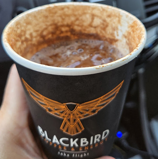 Read moreFirst of all WOAH. I’ve never had such a caffeine kick off of coffee until I tried Blackbird. I had it before my gym session and my 1hr session turned into 2.. I’m usually a 1 small coffee a day sort of person but this stuff was like jet fuel! If I would’ve had my entire large iced coffee.. I wouldn’t have slept. Their large Iced coffee is the equivalent of 3 Starbucks grandes. If you’re looking for a KICK this is the coffee for you. The only critique I’d say is to put the menu in a better spot.. so you join the coffee line around the back of the building where the menu is but by the time you get to the front, if your memory is anything like mine, you’ll forget what you wanted. I had a handy little card with the menu luckily BUT there needs to be one by the ordering window too. Overall fair prices, GREAT coffee, I’ll be back to try other things!