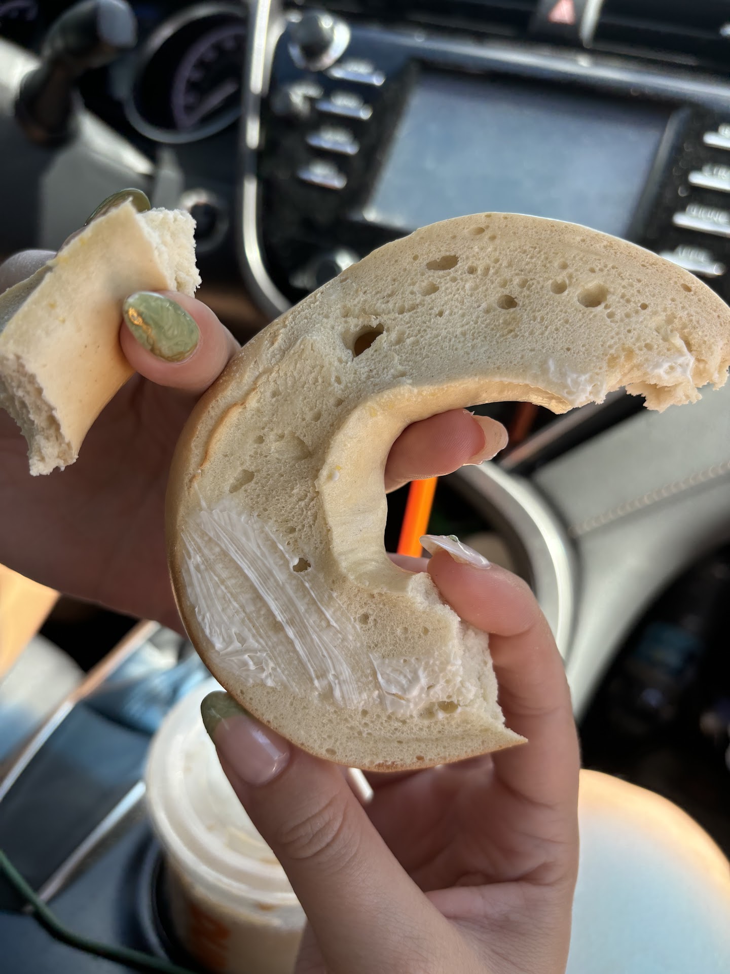 I didnât have time to continue the conversation because I was in the process of dropping my son off somewhere. When I got home, I gave the bag to my daughter. She unwrapped the bagel and spread the cream cheese on it herself. As she began eating, I noticed she seemed to be struggling. When I asked what was wrong, she said the bagel was hard.