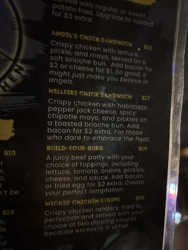 Read moreThe bar was very busy although I was able to place an order with the chef quickly after mentioning I’d like to order food. The food came out shortly after, about 10 minutes. The food was well worth the money, I ordered the hellfire chicken sandwich with loaded fries and the flavors were out of this world and the green sauce added an extra kick to give the dish...
