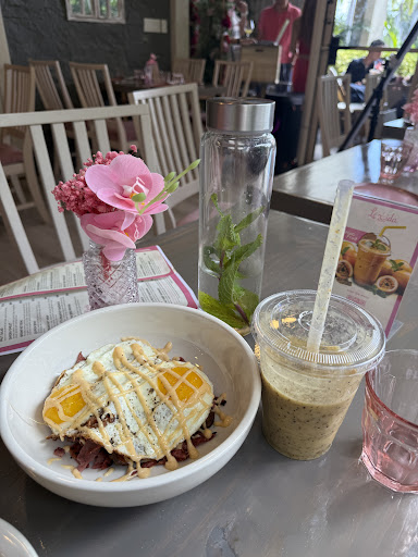 Read more✨ Such a lovely café with a cozy atmosphere and beautiful pink-beige tones — it’s totally Instagram-worthy! 📸 We ordered Huevos Rotos, the Garden Omelet, and a side tuna salad — everything was absolutely delicious. The omelet was a highlight — the shiitake mushrooms were the cherry on top, adding that perfect umami flavor. The Huevos Rotos were amazing too — perfectly cooked eggs and a great balance of sauces. And the passion fruit smoothie was so refreshing and flavorful! 🍹