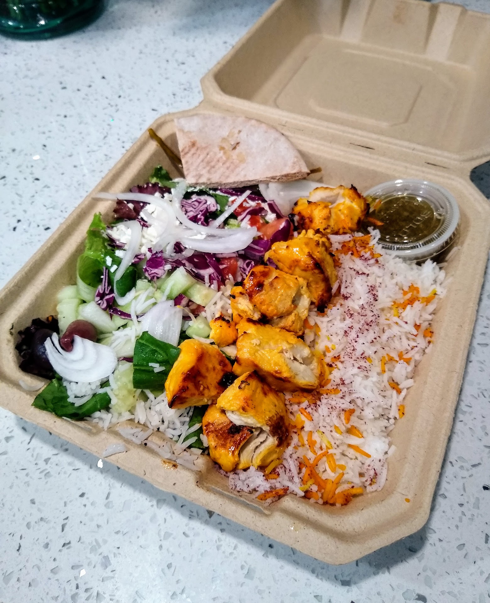 I was looking forward to trying this Persian fast casual restaurant, but was left very disappointed by my experience. The only real positives were that the restaurant was clean and service was friendly. I ordered two chicken kabob platters to go, which were $14 each. We waited 30 minutes for our food even though there was only one other customer in the restaurant. Completely unacceptable for a fast casual restaurant serving simple meals. I expected a proper big platter with chicken, rice, salad, hummus, and fresh pita. The platter was mostly rice, which was clumpy. The chicken itself was tasty and properly cooked and and the portion was decent, but by no means generous. The salad was uninspired with some greens, feta, onion, cucumber, a small amount of tomato, and a few olives. They gave one small piece of low quality pita that you would find at any grocery store. No hummus. The sumac sauce was delicious and was probably the highlight of the meal, sadly. Overall, the platter was comically overpriced at $14, considering what was offered. The 30 minute wait for such disappointment only added insult to injury. I thought that perhaps this was just an off night for them, but reading other reviews suggests that my experience is shared by many others. Overall, the poor value and long wait will keep me from visiting again. I cannot recommend this place. Very...