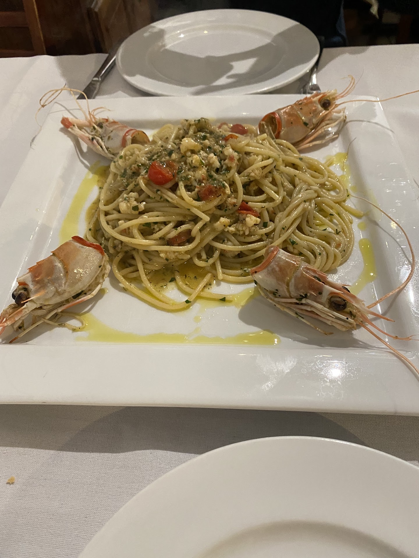 We were a party of four. We had: Margarita pizza and eggplant as app's then lamb (melt in your mouth with that delicate balance of flavor), branzino (perfectly filleted), lasagne (one of the best ever!) and fettuccini Bolognese (perfect!).