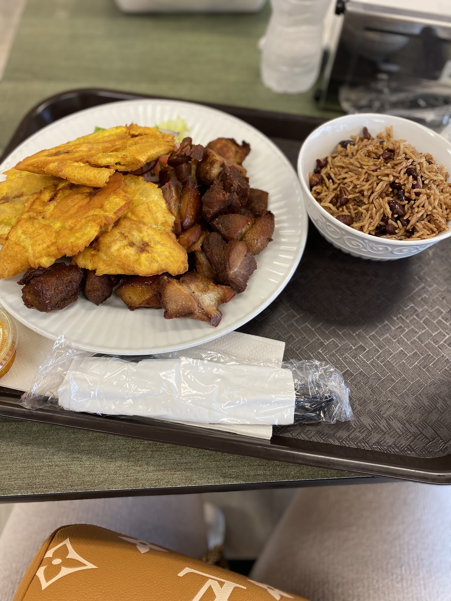 I ordered the griot and my hubby had a turkey sub. The food was fresh, seasoned well and hot. The portion size for the griot was enough for 2 people.