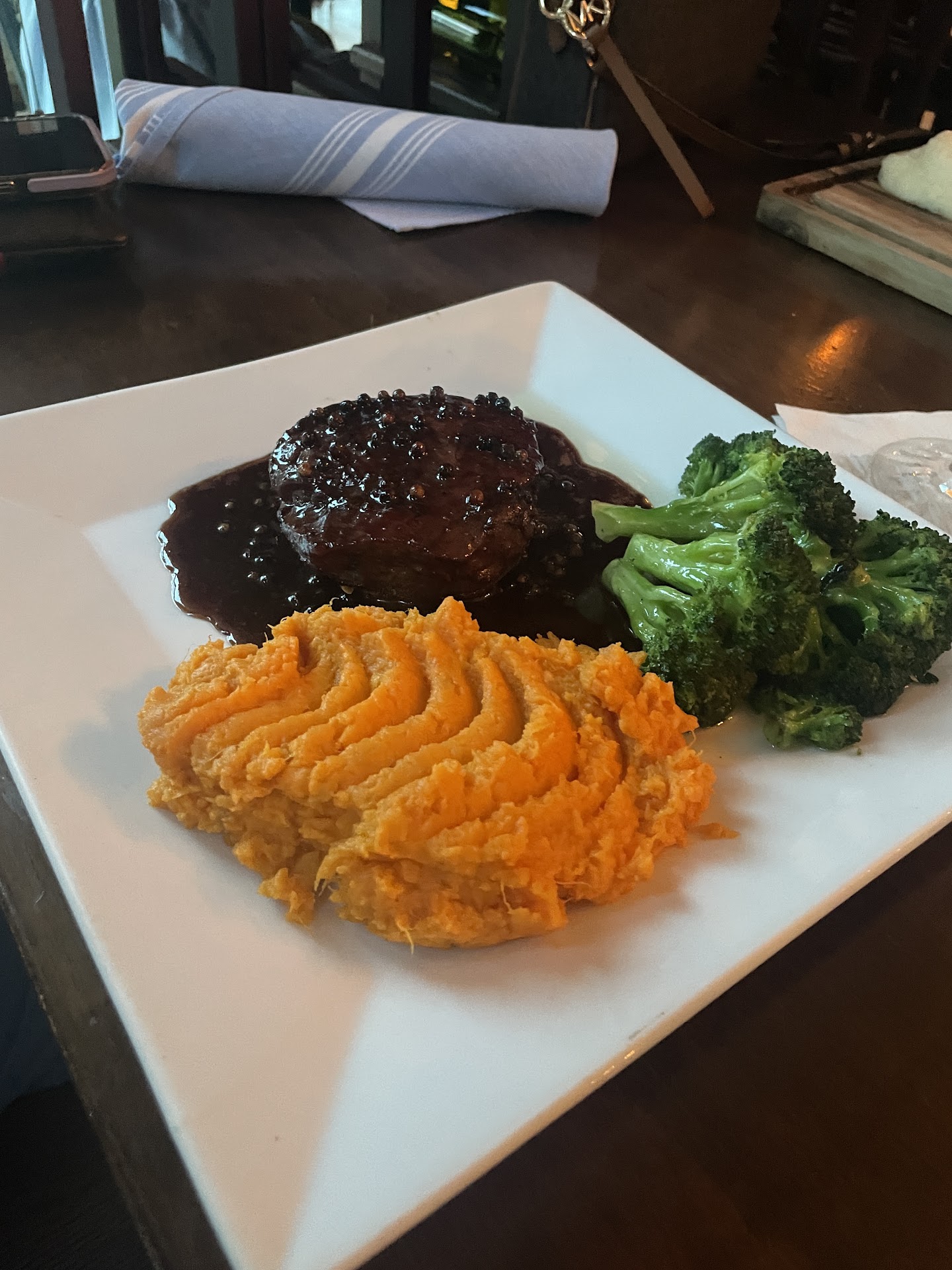 Read moreMy daughter, who works at Home Depot across the street from the motel that houses this restaurant, wanted to try it. I was proud of her taste in restaurants. This place is a winner. A bit expensive for what you get, but with terrific service. My kid recently turned 21 and I allowed her to choose the perfect wine to accompany our parillada for two, all meat. She chose a Malbec. Delicious! At previous Argentine-flavored restaurants, I am used to getting a brazier piled up with several cuts of beef, sausages, and notably, sweetbreads. This came on an elongated plate, not exactly piled up. The skirt steak was medium rare, as we like it. The short ribs came in a pair. Hers was all meat. Mine was half fat. I should give it a half-star for the food for that. The blood sausage was truly terrific, it had a bit of chile in the mix that picked it up a notch--not exactly hot, noticeably tasty. The appetizer was baked cheese with some sliced salami-type of sausage topped with cherry tomatoes. Delicious! To top off the meal, the owner stopped by our table to inquire about our meal. That kind of graciousness is absent from everywhere else. Our waiter was excellent. It's worth a...