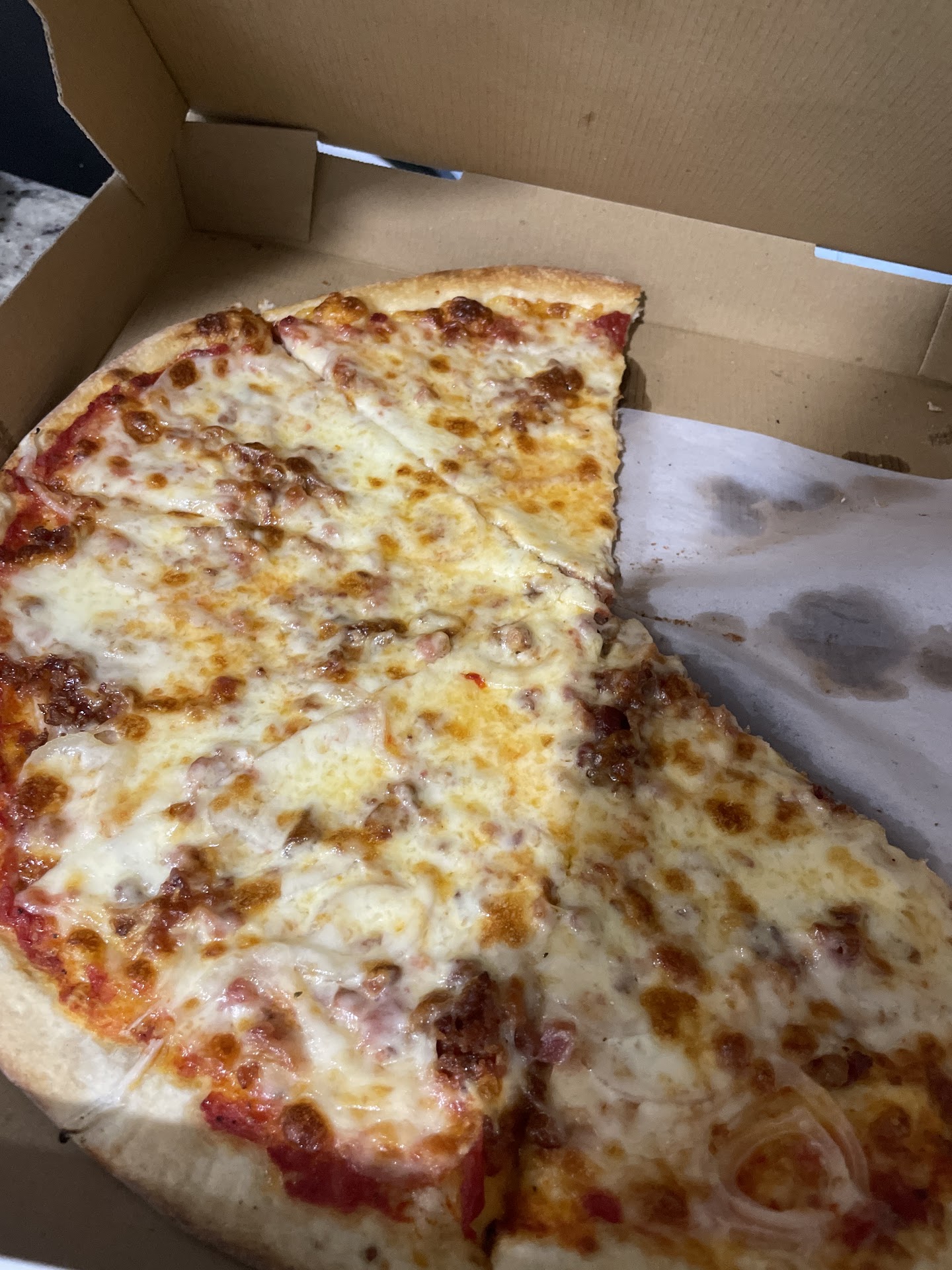 We ordered the large steak pizza and it was perfect thin, crispy crust, fresh ingredients, and just the right balance of sauce and cheese. It had that unmistakable homemade taste you don’t find just anywhere. You can tell everything is made with care and passion. We also got a special deal, buy a large pizza and receive a free cheese pizza, which was a great surprise and just as tasty!