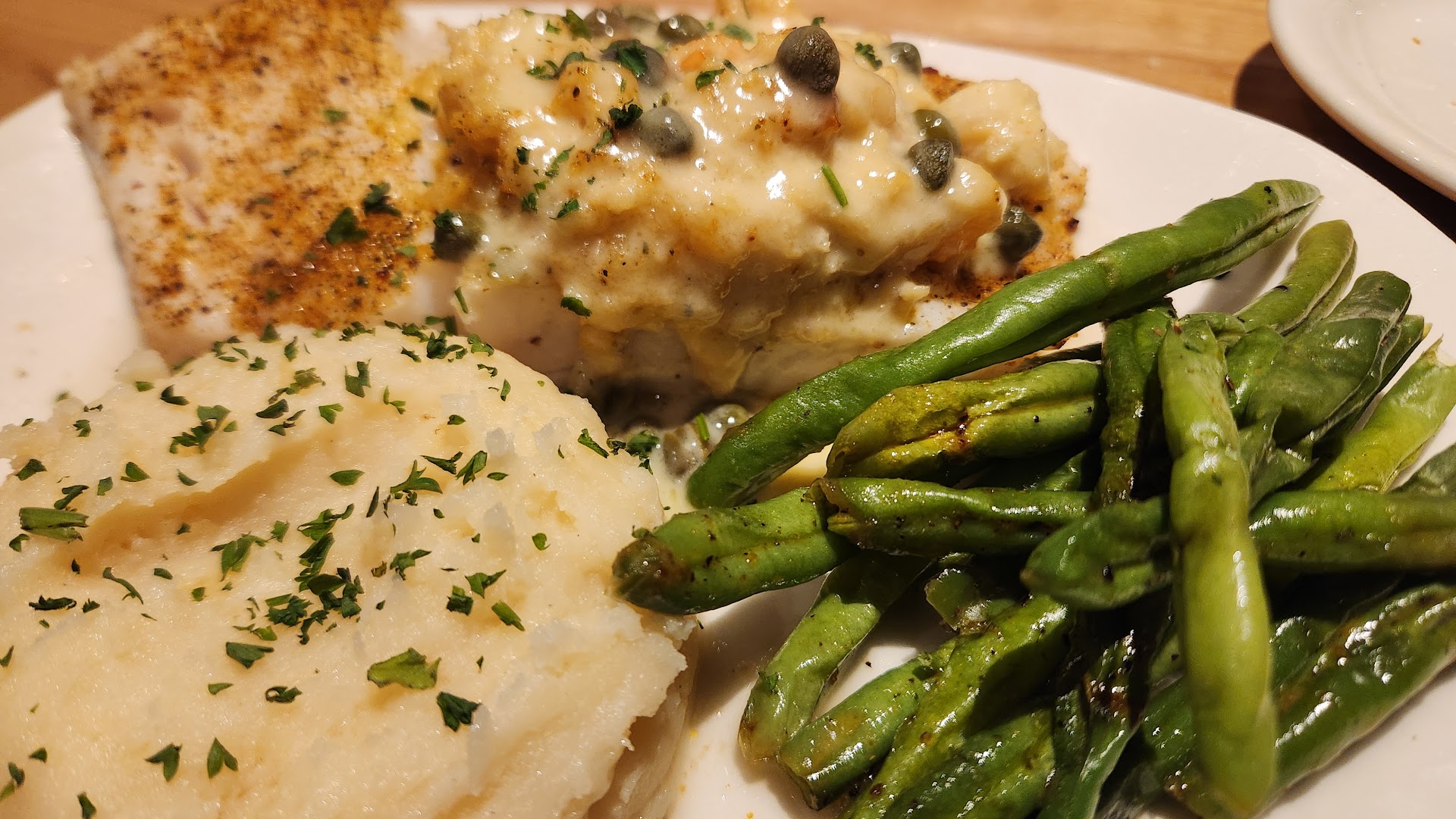 Read moreThis was our first time at this Bonefish Grill and it did not measure up to our experience at other Bonefish locations, which is sad because we are now locals. My wife ordered a vodka martini extra dry, and she got a dirty martini. Ok, mistakes happen, let's move on. We were told that the seasonal vegetable of the day was green beans, sounds good, we both ordered green beans as sides, along with jasmine rice. I had trout and my wife had grilled scallops and shrimp.