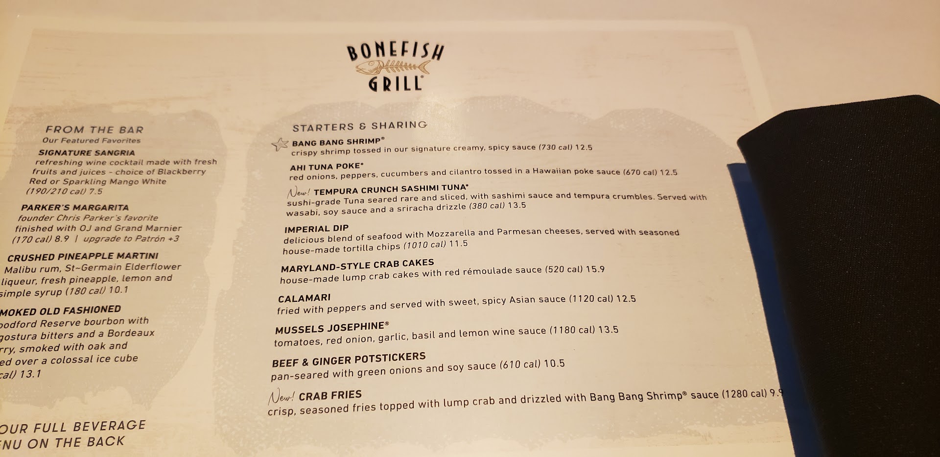 Read moreDisappointing experience. Our server was LaLa. First, she didn't have a good understanding of the items on the menu, when I asked for a description of what garlic & crab dusting was, she couldn't explain. During our entire visit, she spent all her time at a table in the bar with a family with small children. They arrived after us, were served before us, and she had no idea that there was a problem with our meal until we asked another server for assistance. My husband's steak was ordered medium well, and it came out medium rare. When she said she'd have them put it back on the grill, I asked for a fresh piece of meat so it wasn't tough from the recook. Her response was to roll her eyes and say she'd get the manager. The manager came out and said the new steak would take a few minutes, which was fine, but he didn't say he was sorry, didn't ask about my meal, didn't ask if there was anything he could do in the meantime. Just lacked basic customer service. When the new steak came out, Lala was still standing chatting with the family, she never brought the extra bread we requested. She had not checked on us at all. My crab encrusted cod was dry, with canned or overly processed crab meat on it. The augratin potatoes were also dry. The only redeeming item tonight was the pomegranate martini, which was perfect. There was a gentleman server working other tables in our area, and he was super attentive to his customers, wish we'd sat at one of his tables! In the end, the manager apologized and adjusted our bill, but frankly we would have preferred a nice meal with decent service. We have always had great experiences at bonefish in the past, not so...