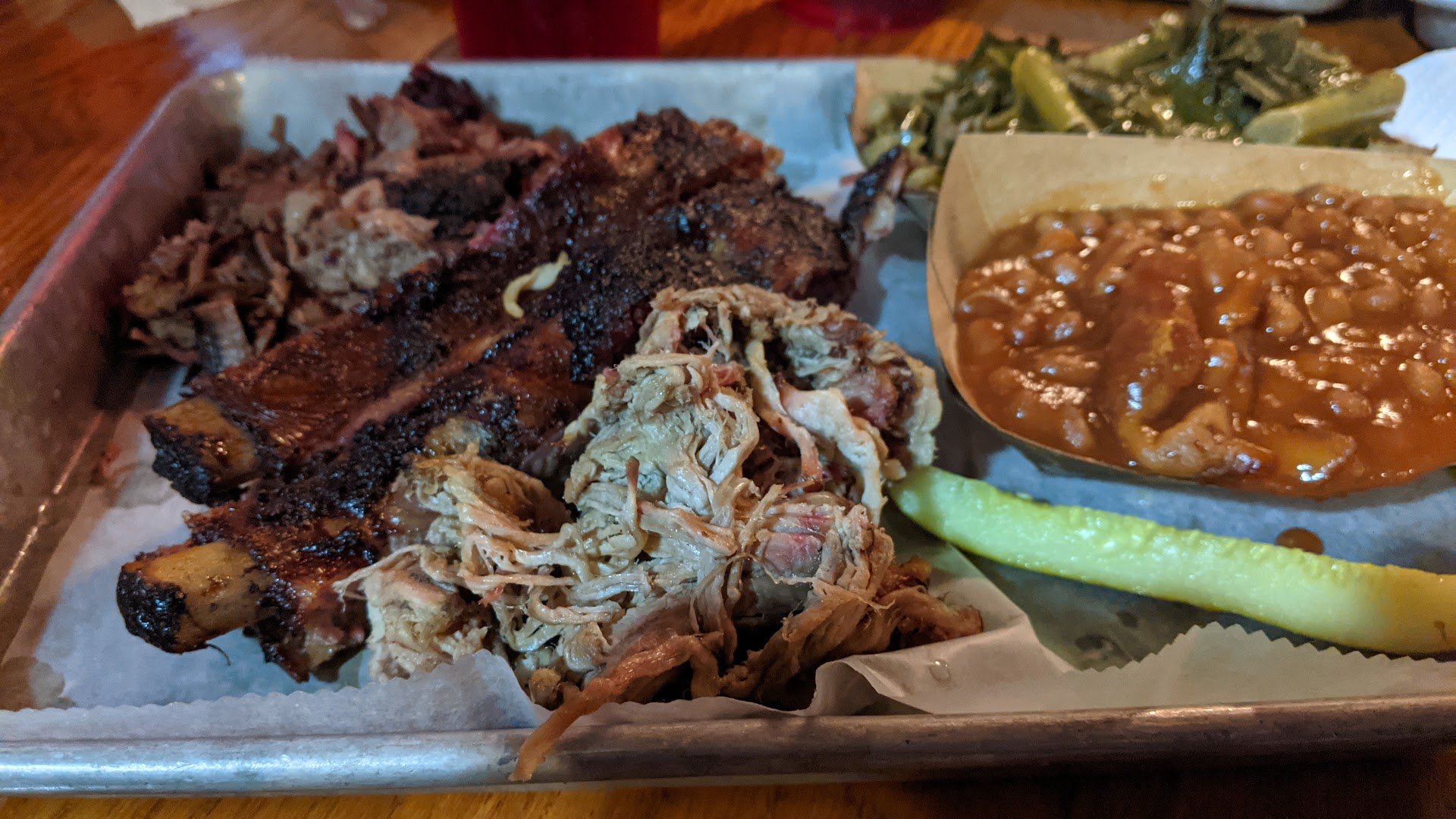 Read moreIf you're looking for a bbq place that's legit in Myrtle this is it! I had the burger with brisket and it was probably the best burger of my life. My daughter had the kids burger and she loved it. My husband had the 3 meats 2 sides and the meats were all great! He smokes meat at home and was very impressed with the smoke ring on the brisket. Definitely with a trip! We also got the nachos for an appetizer and they were awesome! Out waitress was a sweetheart! The owner is a nice guy and it was great to see him helping the waitresses out by cleaning tables, seating customers, and engaging with the customers. The homemade sauces are great. I regret not asking if they sell them. The ONLY complaint I have (and it's minor) is we were a party of 8 and the restaurant is TINY so as we were walking in the building trying to squeeze in the very packed restaurant the lady behind the bar yelled at us in a very unwelcoming way to shut the door. I get its hot in there but it was so unfriendly we almost walked right back out which we ended up seeing other customers do as she yelled at them. We then saw her talking about the customers (including us) about how dumb you have to be to leave a door open. Trust me we wanted in the building too. We weren't standing outside in the heat for fun. But don't let that scare you away...it really is a great little hidden treasure and we will...