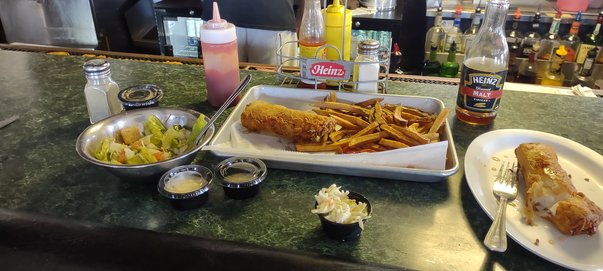 First, it was late; about 20 minutes til midnight but we needed to eat. After calling some places whose kitchens had already closed, we called here where we were cheerfully greeted on the phone. We were allowed to order even though the kitchen was about to close at midnight. Jersey, the bartender who answered and who waited on us as well, was super amazing over the phone. We immediately felt welcome and had not yet even arrived.