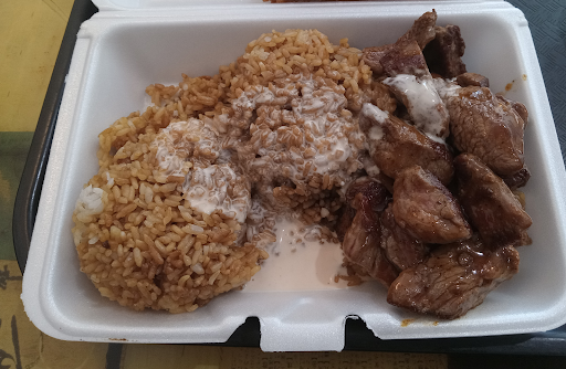 Read moreThe food was okay, nothing to rave about or quite frankly did I enjoy much, I ended up throwing out over half my plate and so did most of my family. It is very expensive for what you get. They have a sign inside, that is not disclosed online or when you call to order, that plates with meat are charged $1.00 extra due to the economic strain or demand, something to that nature. The white sauce is not very good and I am pretty sure it was the sauce, but kind of spicy. My daughter did not want to eat her plate because of the little kick it had to it. The wait time was very long. The to go plates did not come with any silverware. The staff were not very friendly and did not communicate well about such a long wait. I would not...