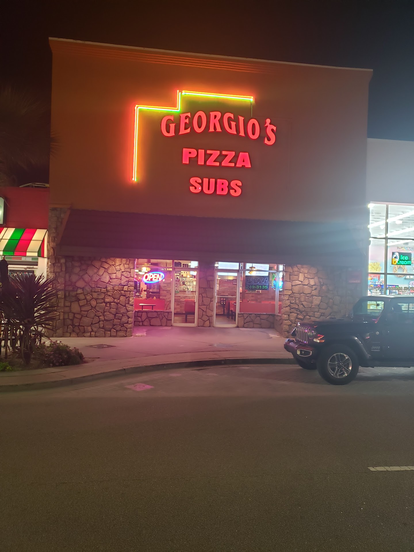 Great pie. Great old-school pizzeria atmosphere. You order, get a number, and they call it when it is ready. I would describe the crust, which is so crucial to any good pizza, as thin to medium thickness at most, with a nice crispiness to it and a slight chew. The sauce is milder, smooth, and delicious. Georgio's uses a combination of mozzarella and white cheddar that gives a perfect melt and flavor. And they make their pizzas with love. No conveyor belts. No get em in. Get em out. They look, they pull out and inspect the bottom of the crust. They wait until your pizza is done to perfection. It may take a little longer and may cost more than the "fast food pizza" places. But worth it. I personally recommend pepperoni and mushrooms - or just pepperoni. You do not want to overload a pizza this good with too many toppings and take away from the crust, sauce, and cheese. I've heard the steak and cheese subs are very good. But with pizza as good as theirs, why would I try anything else?! Thank you, Georgio's! Keep doing what you do. Will be back, as always, for another pie on my next visit whetever I am staying on the...