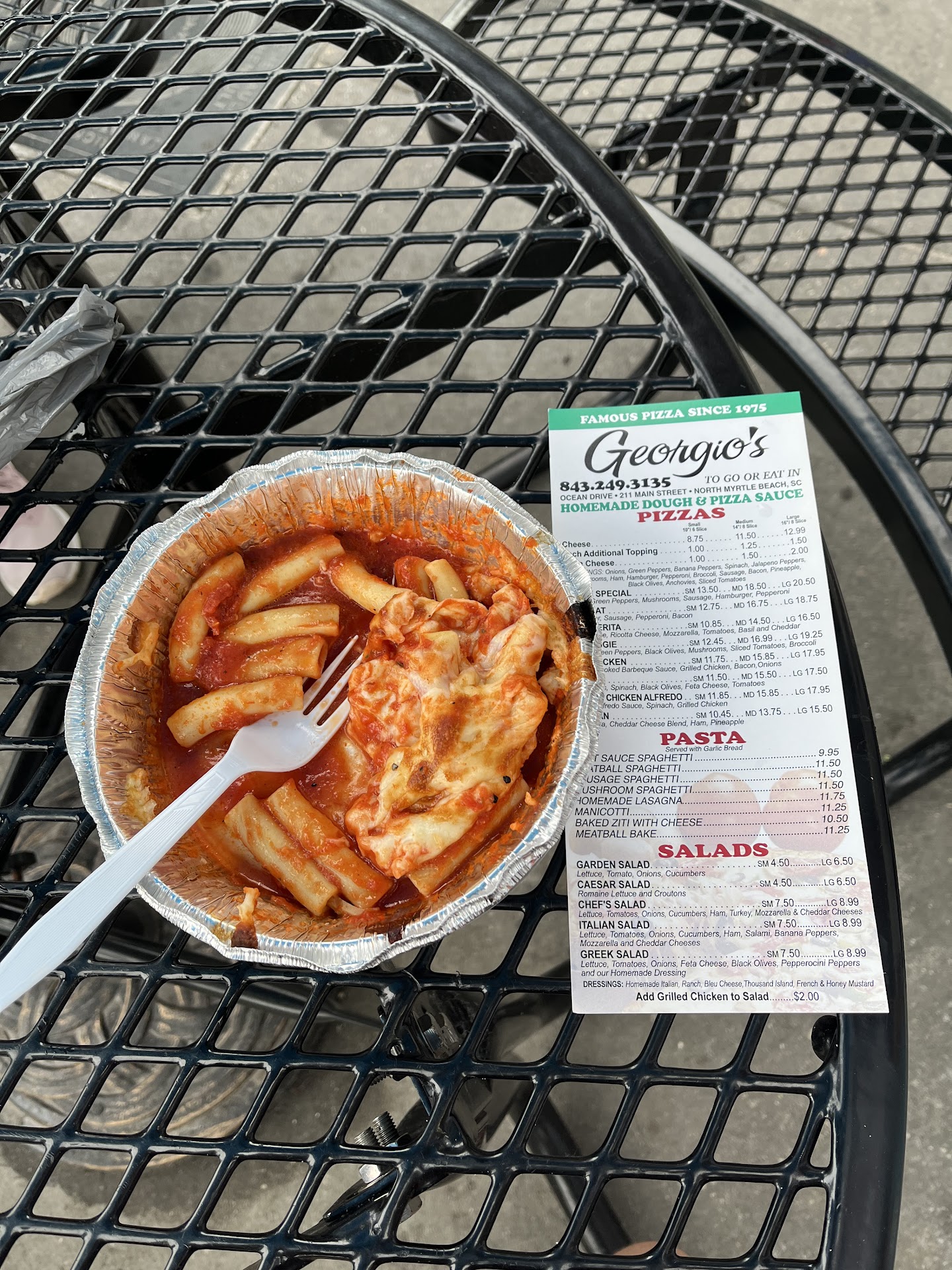 Let me start off by saying that I work in customer service. So although I was partially in the wrong here, my experience at Georgio's should never have been this horrendous. It was just AWFUL business. Here is what happened: On Wednesday, December 7th I was driving through North Myrtle Beach to meet my husband who is active US Navy. When I arrived in Georgio's, I was the ONLY customer in the place. I walked up to the counter and made small talk with the middle aged man behind the counter. I told him that I had been in the car for the last seven hours and was looking for something to eat. I looked up at the menu board and saw that they had a specialty pizza featuring buffalo chicken, veggies, and ranch dressing. Now, I'm lactose intolerant. So I say to the man that I'd like that small pizza, but no ranch. Some of the other pizzas mention mozzarella or pepper jack cheese, but this specialty one did not, so I assumed (my fault) that the ranch was the dairy item on the pizza (as it often is - I know because this is one of go-tos when it comes to pizza). I also ordered a yeungling as I was told that they didn't carry any local beers. When the pizza arrived, it had a thick layer of cheese on it. Surprised, I told the man that there was no mention of cheese on this specialty pizza, and that I couldn't eat it. He said WELL TOO BAD I should pick around the cheese! I looked at the pizza hesitantly (as I had already paid for it and tipped on it) and then back at the man and said no, I couldn't do that. He then told me if I wanted another pizza then I would have to PAY for a SECOND pizza. Again, surprised, (and keep in mind tired and hungry), I said I wouldn't do that. I told him that I would finish my beer and then leave. Amazingly, this man stared me down as I finished my beer and left the restaurant. Did I mention that I was their ONLY customer at...