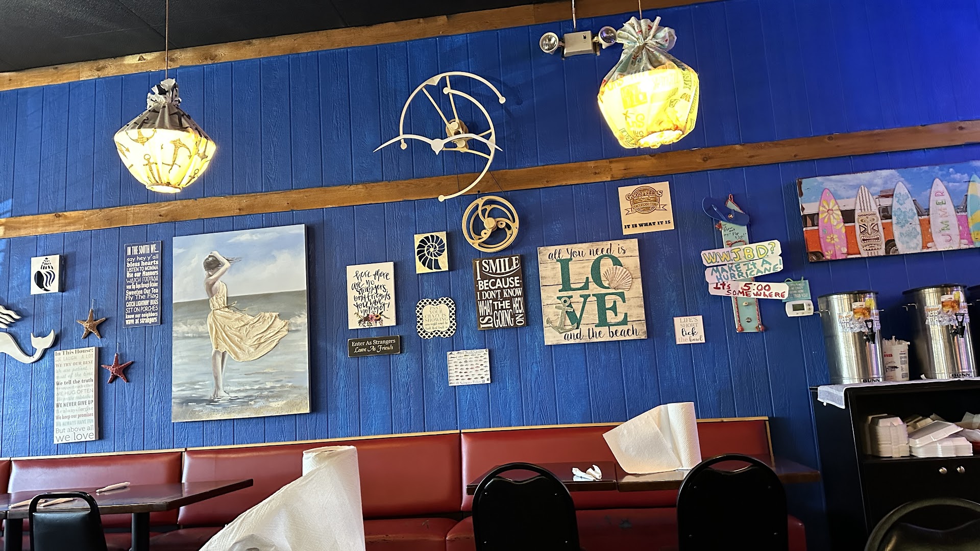 Read moreWe ended up here by mistake thanks Yelp T.T I googled Lobster Rolls North Myrtle Beach and this place came up. This review was tough to be honest so bear with me. I wish you could give half stars, I might have done a 3.5 We started off with the onion rings My husband got the popcorn shrimp plate $18 with side salad. I got the shrimp alfredo $18 with salad. The onion rings were to die for, some of the best I have had. Crispy and fried to perfection. His popcorn shrimp was awesome. Again crispy and fried perfect. The batter was just salty enough and the shrimp were still nice and tender. It looked like fresh cut fries served with it. They were ok maybe just another couple minutes in the fryer to make them perfect. Here's the stumble. My shrimp fettuccine alfredo. The noodles were cooked great but that's kind of all this dish had going for it. The sauce was on the runny side and the flavor was ok but didnt have the punch a nice creamy alfredo sauce should have. The shrimp were cooked well but had no flavor. Like just steamed in water.l, they desperately needed some flavor sauteed in butter with some salt, garlic or something. It definitely wasnt a meal I would pay $18 for again. One lady that served out table was super nice very bubbly and very conversational which i liked. She took the time to explain to us the history of the decor because i adored the little fish on the wall. There was a second lady that wasnt....unpleasant just not personable I guess would explain it. Overall the trip wasnt bad but I dont know that I would return. I suppose if I was in the mood for popcorn shrimp thatd be the spot but with the way my meal was, I'd be hard pressed to go back and try...