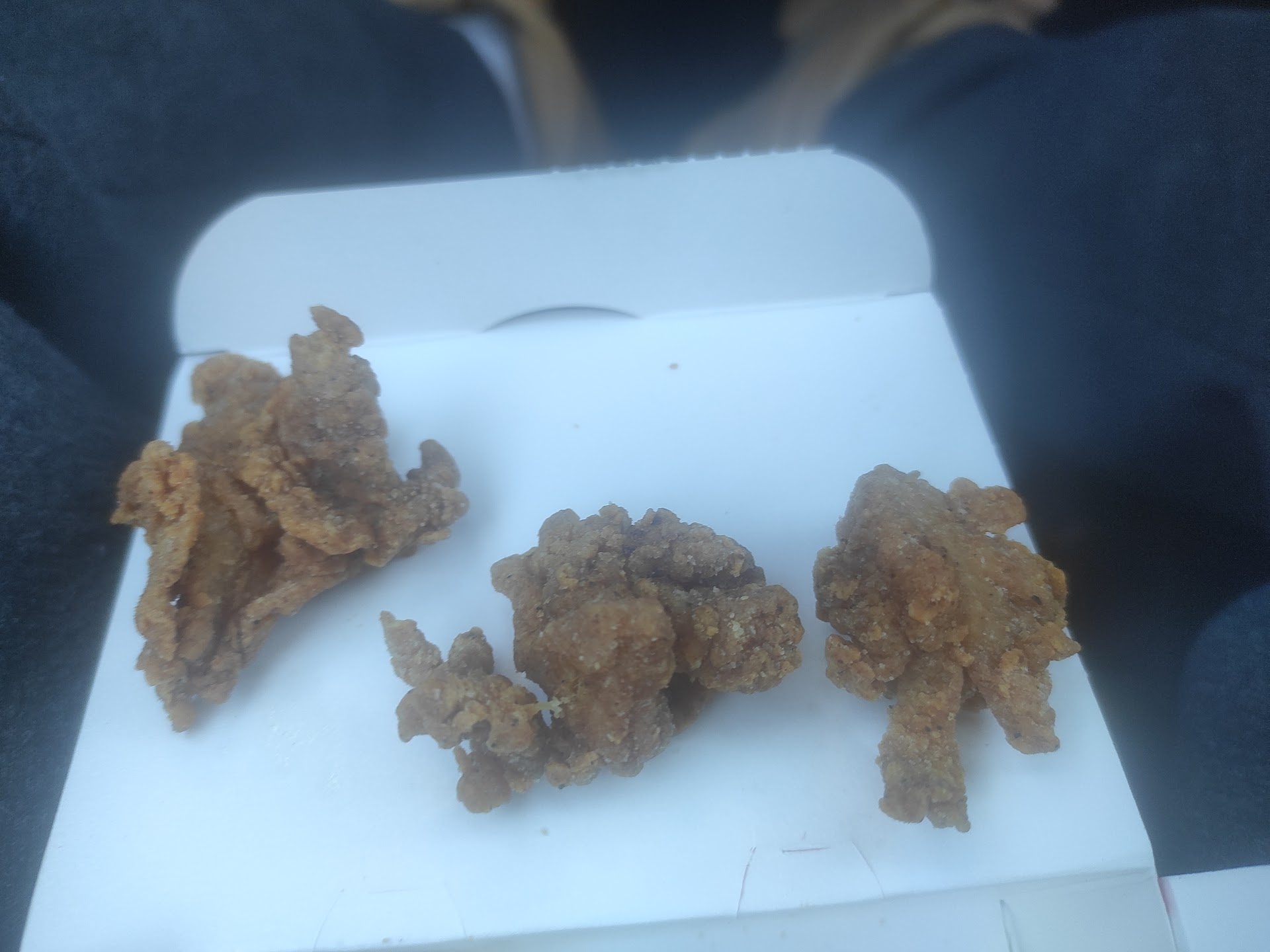 DON'T TRY TO USE DIGITAL COUPONS HERE! I signed up for weekly text coupons months ago. Made it a point to use one and try the new nuggets for $4. Made a special trip there to the drive through. I was told they never heard of such coupons and didn't have a scanner. I was in total disbelief. Decided to order the nuggets anyway, bc I was starving and never tried them. I paid more than twice the value of the coupon for what I would be ashamed to call food that costs money. 50% of the order was more like fried breading. Most of what was left of the so-called nuggets were smaller than a quarter and been sitting on the rack for well over an hour. I've worked fast food in an excellent chicken and biscuit spot, and I know what's up...No not Bo's. This is the kind of food you look at and then tell the customer, "Hey sir, Sorry it's going to be a few minutes, but it will be worth the wait. Ok? What I was served, that I paid full price for, was the lamest most sorry az experience I've ever had at a KFC, even after expressing i'd never tried them before and that's why I had the coupon. What a way to impress someone with a new menu item. 🙄. The sad part is, I was so hungry, I pulled over to circle k and proceeded to attempt to pick through and gnaw on what was supposed to be breaded meat. I was in disbelief and my neighbors prolly got tired of me talking about how crappy it all was. A complete disappointment and rip off. All three pics are the same pieces. Those were some of the nicest. A few others were the size of a nickel. I was seriously trippin on this. Congrats KFC, and Google for nagging me about this review, because this is the first bad review I've ever made. Obviously I wanted to, as I always do when I'm blessed with horrible doo, because I took pics and still had the pics in my phone. But now while I'm at it, the time before last I was there, I ordered for myself and a friend at the drive through and I had ordered a three piece dark for myself and man I was looking forward to that three piece and normally woulda made a small snack out of it later. I shoulda known better. Check your food before you pull away! Of course I was shorted a thigh. To me, that's like going "all in" when I pay extra for a three piece than the standard two. I get home and have a huge wtf moment. Shorted me the extra thigh I went all in on. I called, they were sorta nice, and said come on back up and get one free. She kinda seemed like I was playing games and had to go into detail about being there. Also a joke. If someone says you shorted them a drumstick or whatever, just givem one. Dang! Who cares if they actually came in. It only cost you a couple pennies, and eliminates frustration & pissed off non returning customers. Come on back? Ok yeah right, thanks though. Good looking out. Whoever the owner is, needs to make everyone watch " The Fish Philosophy" if you want a successful business. It's a training video you likely have to buy, but it will transform any business. The short thigh exp was back in the fall. The service has always been mostly pleasant I guess, the few times I've been & once inside. The last time at the drive through was cordial, but whoever is serving food directly to the customer, needs to check it, because it makes all y'all look bad, especially the one handing over the order, on something as simple as some dried up fried skin & fried breading. That I know dang well everyone knows how long it's been sitting there, & what that mess looks like. There is no way in this world that any employee in that store would even think of eating the excuse for nuggets I was given. At least make sure it's hot-n-fresh crap, if crap is what is served. It was dead there. No one coming or going the entire time. Maybe they just want it to stay that way. Maybe y'all have Fried Chick Rines now and I got the wrong order. Will I be back? Only with a paper coupon, but ain't making no special trips or promises & for sure will not be back other than lunch or dinner. Not getting more old...