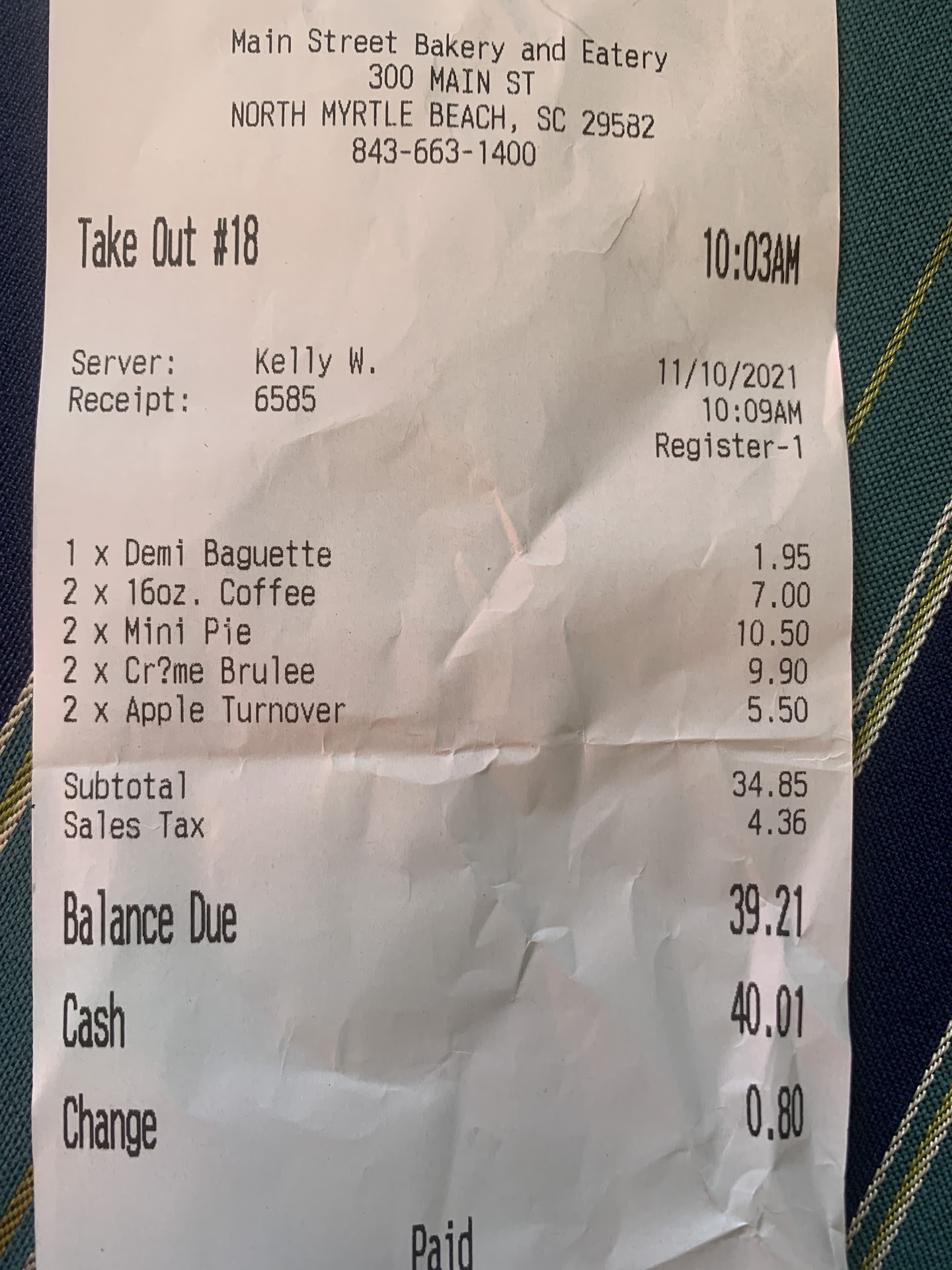 Main Street B&E is an interesting little bakery not far from the beach. There's just enough room to stand around and place an order and a few stools on a counter in the grill side of the restaurant, but that's it. There's almost no space inside, so it's in and out as fast as posisble.