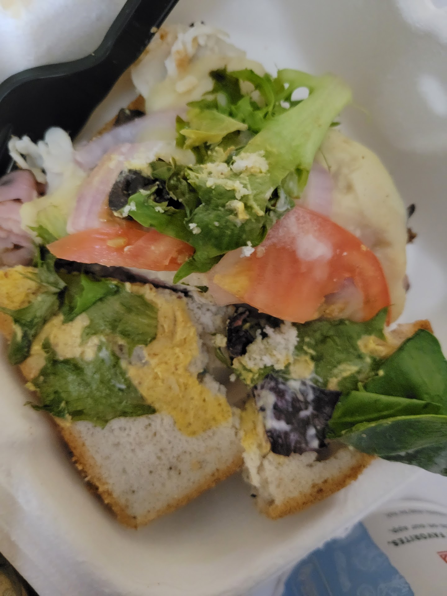 When I arrived I stood at the take out/pick up register for about 10 min (after 5 min, I grabbed my own take-out bag) & had to yell to an employee in order to get service (too busy not paying attention to anything). When I got to my destination & opened my sandwich, it was a joke. How hard is it to make a sandwich correctly? You didn't even have to take my order. All you had to do was READ IT! Was supposed to be gf Memphian w/spinach, spring mix, red onions, black olives, extra mayo, NO MUSTARD w/a pickle & cucumber & tomato salad. What I got was the Memphian (gf) w/stale bread (one side was an END, WHAT RESTAURANT SERVES AN END ON AN ALMOST $14 SANDWHICH?!!?), 2 olive slices, 4 spinach leaves, barely any spring mix, maybe 1 or 2 onions, NO MAYO AT ALL, W/MUSTARD I CANNOT EAT & NO PICKLE! So, for over $16 (thats w/tip) I only ate CUCUMBER SALAD! How hard is it for Management to do there jobs, yes Management bc it starts there! Try actually managing your employees, maybe then your businesses won't fail & we the consumer won't pay the price for your laziness, or is it incompetence?! Mcalister's used to be decent, if I could eat Subway, its probably a better option than this store...at least the breads probably fresh & you will definitely get a...