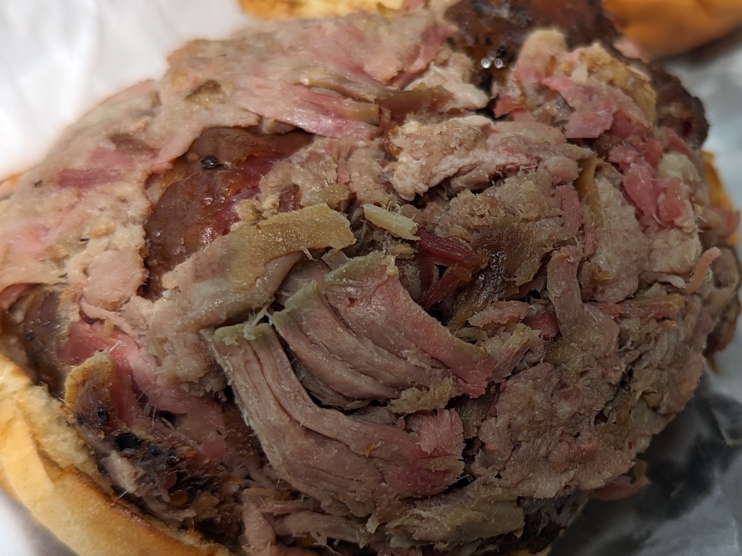 The meat was tasty and lean. There was just the right amount of fat to make it juicy without making it greasy. There was no gristle or hard pieces that you sometimes get at barbecue places. Lots of lean, juicy meat with a little bark mixed in.