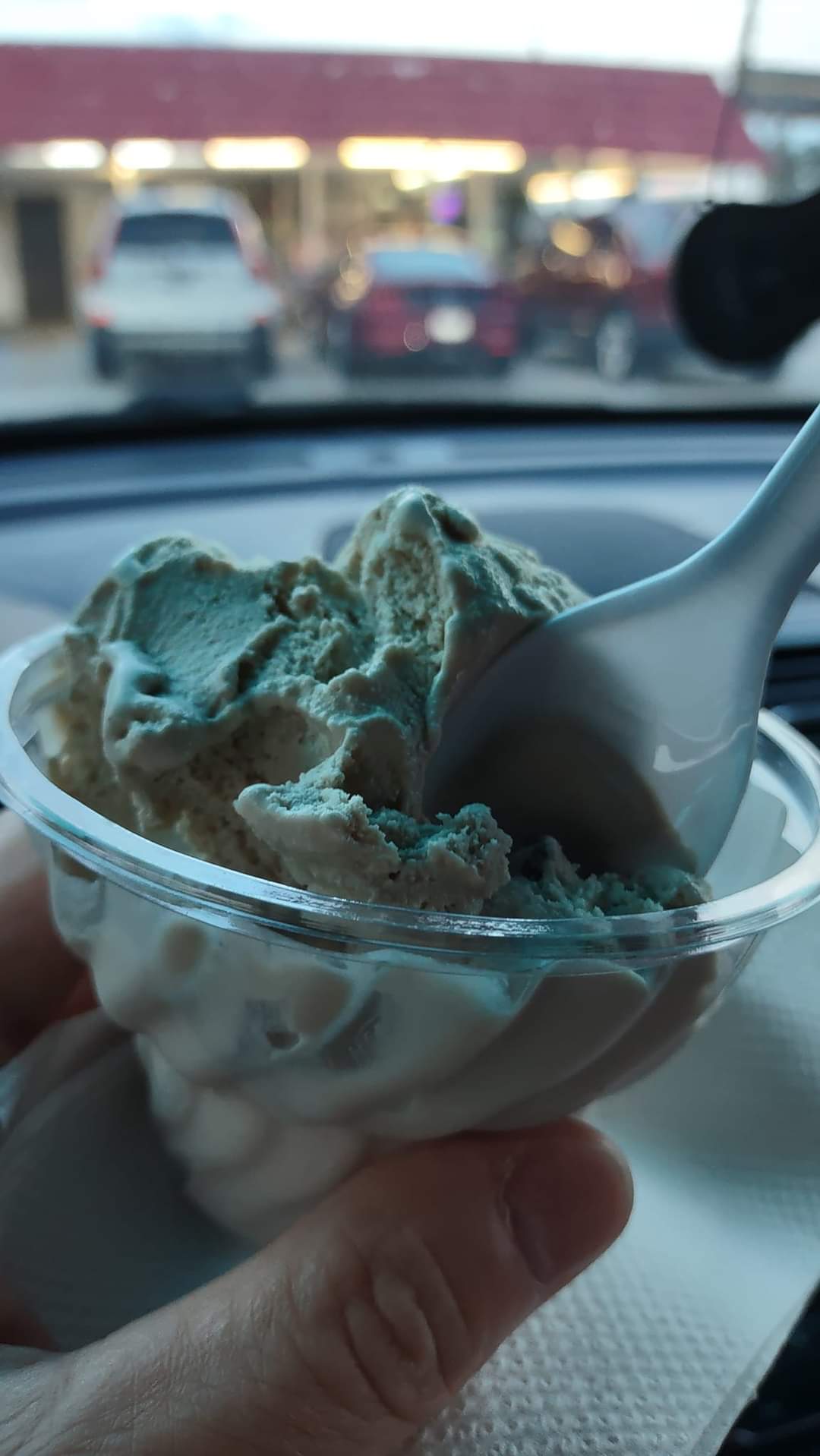 The ice cream gave my mouth a strange filmy coating. It was like the kind of film from cheap Walmart birthday cake or something. I've never experienced this at Painters before. The color of the chocolate was different -- much lighter. My friend ordered strawberry cheesecake and Oreo flavors. There used to be huge chunks of cheesecake and Oreos in them. This time there were NO chunks of cheesecake, and only tiny ground "Oreo" bits.