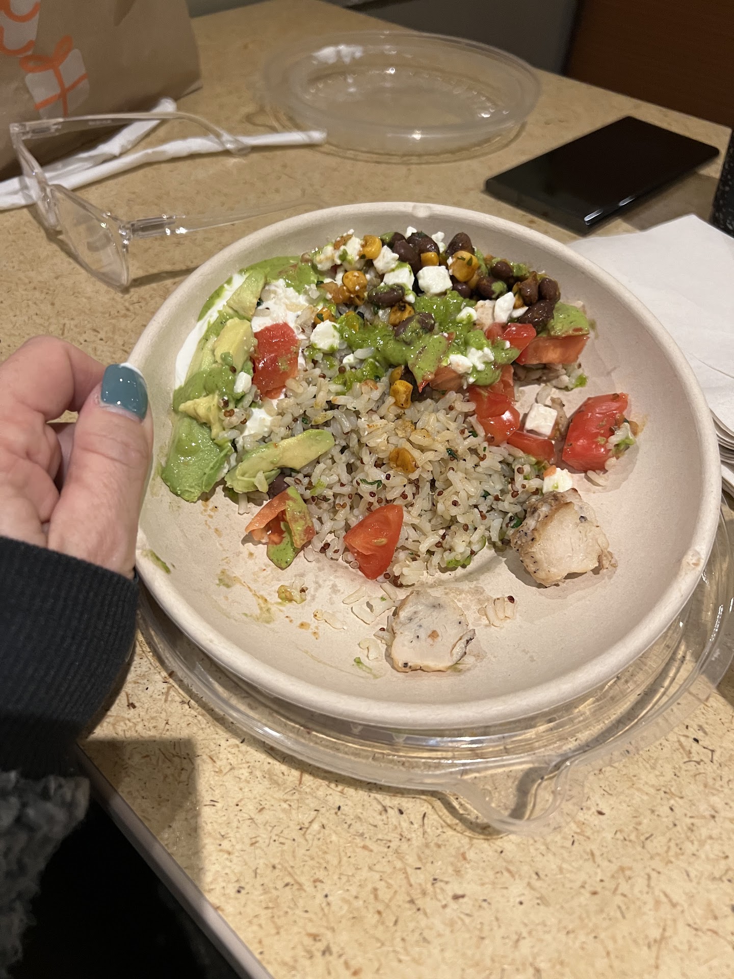 Read moreAbsolutely terrible! I have been to this Panera location a handful of times and each time it gets worse, to the point I will not go back. The workers are usually too busy to wait on customers and talking among themselves to the point as a patron you feel awkward to interrupt their personal conversations. Aside from pretty much never having all the menu items available, or all ingredients, or heck, even cash (recent sign read “exact change only and cards only”), the food in amounts and quantity are lacking. We ordered 2 bowls, a Mediterranean with chicken and a Baja with chicken the other night. The person taking our order never asked what we wanted for our side item or if we were eating in or not. I had to ask if I had any offers available in my account, which apparently I did (that expired the next day, but that wasn’t mentioned). When the order was ready it was packed in a to-go bag even though we were eating in. The to go disposable bowls are small and the presentation is quite different given that the food is all crammed in and the bowl has a flat plastic lid on it. If that were the problem…just the opposite. There was so little food in the bowl, the ingredients only filled it half way. The items didnt shift or slide in transit since the bag was literally carried 50 feet from the counter to the table. It was absolutely mind blowing to pay more than $11 for what we got. I went to the pick up counter and was told that I was given their standard portion for the entree. There was no explanation as to why it was in a carry out container or why it only filled 1/2 the time bowl. Spoke to the manager. Got the same line of reasoning and was told if it were in a regular bowl it would be the same portion….BTW, which looks NOTHING like what’s portrayed in the photos they have of the bowl by the front counter. I counted 3 pieces of chicken in the entire salad. After questioning the lack of food in the entree the manager offered to make a new salad in a real bowl….and amazingly it looked much better since the quantity was able and filled the bowl. Really...