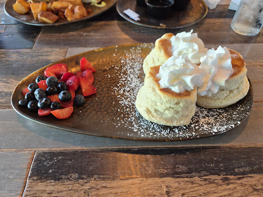 Read moreTook mom here for Mother's Day breakfast. She has been wanting to try the Japanese pancakes. We arrived early and was lucky enough to be seated at the last outdoor table! Weather was gorgeous! We wanted to spoil mom for all that she does and thought an elegant breakfast would be a great way to start the day! The older lady at the front was very friendly and seated us right away. We noticed she was also walking around keeping everything clean too! Wiping tables down, putting stuff away, picking stuff up off the floor. Love that! I hate when you go out to eat and employees walk over stuff on the floor. Great lady there! Wish I would have gotten her name. Our waitress came out shortly. She was friendly but for some reason seemed a little flakey. Maybe she was tired. As I stated earlier we brought mom here to try the Japanese pancakes. (Which btw is their signature dish on the menu) The waitress tells us that the restaurant decided not to make them that day. When I told her how disappointed we were, she did apologize and said they take a long time to make. I said we understand but made a special trip there just to try the pancakes. So we did not want to ruin the morning for my mom so we continued to order. We ordered the fried green tomatoes and French toast sticks to share as breakfast appetizers with coffee and juice. Mom ordered an omelet, I ordered the ham and gouda sandwich and hubby ordered the regular pancakes. After we gave the waitress our order ... I mentioned again how disappointed we were about them not having the Japanese pancakes. I told her I just couldn't believe they wouldn't be serving them on Mother's Day weekend and they should take them off the menu. Five minutes later she comes back and says they will make the pancakes if we still want them. We had already ordered a lot of food but I wasn't about to disappoint my mom. I said of course we still want the pancakes! Bring all the food! We will take home whatever we cannot eat. I have to say the food was wonderful! My mom loved her omelet. My ham & gouda on the crossing was delicious! The French toast and fried tomatoes were very good too! We had a tasting table of goodies for breakfast, great conversation and just a good time enjoying the beautiful weather and spending time together. The Japanese pancakes finally came out but was worth the wait! OMG ! Wish we would have ordered more! We probably would have if we didn't already order so much other stuff. Next time we will order extra. Overall, our visit and the food was terrific! I would definitely go here again but would suggest you call first if you're expecting to try the Japanese pancakes. I just hope they have them next time we go! Now that we've tried them, we're gonna want them fluffy babies! Yum! We'll be back! Get those...