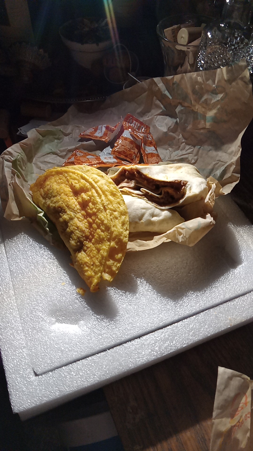 I haven't been to a Taco Bell in many years. The one back home moved to the other side of town. We don't go that direction much at all, so it's been ages, though we ate at the former location a lot. I have no idea if that one has all the employee-less service like this one, but I missed the service of a restaurant today. Guests shouldn't need to do everything once they walk in the door. They already have to make their own drinks and grab condiments, utensils & napkins needed, whether it's a to-go order or to eat in. All that should be in the bag of a take out order. Why do they have to do everything else, too? Next, I suppose we'll be in back making our own food too. Sorry Taco Bell, you slipped up...