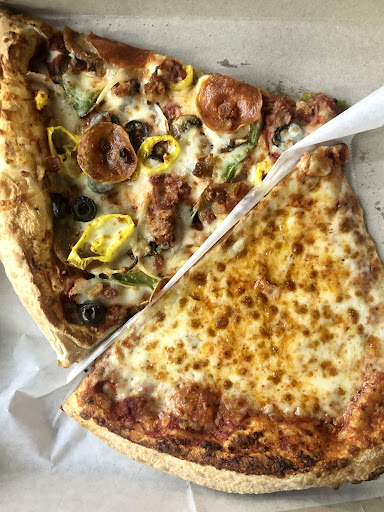 We were so looking forward to loving this place because it was not a chain. Called in for take-out: $24.50 for build your own 18" pizza with multiple toppings. ACCURACY: We were given a cheese pizza (had already arrived home, upon discovery) VALUE: we were charged over $30, when online the pizza price was supposed to be $24.50. I questioned this at the time of payment and was told. "I don't know anything about that" EXECUTION: The cheese was mostly spilled into the box at the side on the cardboard. Much of it was not on the pizza. (The box had been maintained level during our ride home, so this had to have happened before giving the box to me.)The pizza crust was the texture of wet paper. It was not cooked. I also overheard an employee telling a supervisor that someone was on the phone who said their pizza had been delivered as if it had been dropped and they wanted their money back) MAINTENANCE OF SANITATION: The was a sign on the door asking patrons to maintain a safe distance; however, once inside the employees did not encourage this. 3 patrons were lined up blocking the payment area while they waited for their pizza slices to be heated. While I was waiting at least 6 feet away, an employee told me to come over to the cash register to pay. I could not get by these 3 people to pay without coming within a few inches of where they were congregating. In addition, multiple people used the "finger signing" payment register and no employee cleaned this between usage.