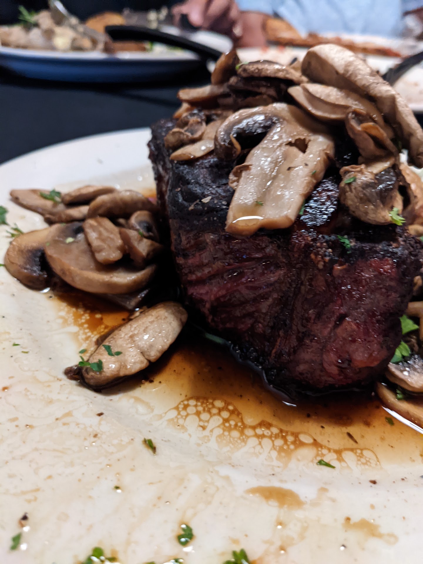 Read moreWhile at Myrtle Beach visiting my parents we went to barefoot landing. After checking in with a few restaurants, learning waits were more than an hour and a half, we walked into Umberto's. The restaurant is split into two sections with the waiting area and host stand in the middle. Although the waiting area was fully packed we were surprised to see that within 5 minutes they had seated everyone who was waiting when we walked in. By the time we got to the host which took about 3 minutes, we were also seated. They get five stars for moving them in and out right off the bat. Once we sat our server Mickey explained to us that all entrees come with their three House appetizers. The first was pasta fazool, the second was a tomato salad, and the third was spaghetti in marinara. The house appetizers were amazing!!!! After that my father ordered the chicken with prosciutto and provolone, my mother ordered the eggplant parmesan, I ordered a 24 oz New York strip steak which was 4 days wet aged and cooked to perfection. I live in Philadelphia and eat in some of the nicest steakhouses in the country. This was by far and away the best steak I have ever had in 41 years of life. No exaggeration. For starters it was actually 24 oz and looked more like a dinosaur leg. Beyond that it was cooked to absolute perfection. I could not believe what I was experiencing as I continued to chew. So much so that I asked Mickey to tell the chef who cooked my steak that it was the best steak I had ever eaten. We had iced teas and lemonades, they were delicious. When all was said and done there was no room in the tank for dessert. When the bill arrived we almost fell off our chairs. It was only $125. I don't even know how that's possible, but it's true. I will be back to Myrtle Beach in September and I'm already looking forward to coming for round two. If you don't believe me check out the photos. I took detailed shots because the food was that amazing. Do not waste your time waiting in excessive lines for mediocre food. These folks are from Pittsburgh and they know how to do steak. Go right to Umberto's. Can't lose. Life-changing experience!!! One of the best restaurant experiences I...