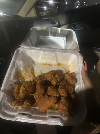 First visit since converted from Taco Bell. Counter serve, self serve drinks & seating for about 16. Shares building with Shell convenience store. Dining area clean, several napkin holders empty. I arrived on a Thursday about 11:45, there were 3 people seated obviously waiting for orders. Only saw one person who was taking orders, answering phone, preparing food, serving food & bussing tables. My order taken after 5 to 8 minutes-NP-and took a seat while food prepared. Multiple flavor choices of wings, plus burgers and other sandwiches available. My 8 Buffalo Garlic wings were ready in about 5 minutes. Sauce was hot sauce (Franks I think) diluted with butter like product, no garlic, no celery or carrots & a small plastic container of blue cheese dressing. No utensils, condiments or napkins. Food was hot but obviously cooked previously. The employee present was stretched between duties, I understand but I noticed he was handling cash making change and going directly back to preparing food w/o gloves. I wasnāt comfortable with that. More employees would most certainly improve...