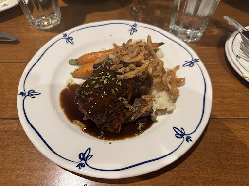 I have no complaints on the actual quality of the entree: baked ham, potatoes, green beans and roasted carrots. In fact, each was delicious in its own way and I thought it appropriate for the occasion. Two things can be true at once however: despite the good taste, the portion was not exactly generous. We ordered one Bellini, one hot tea with our meal, a total of $120 later, we still left the restaurant hungry.