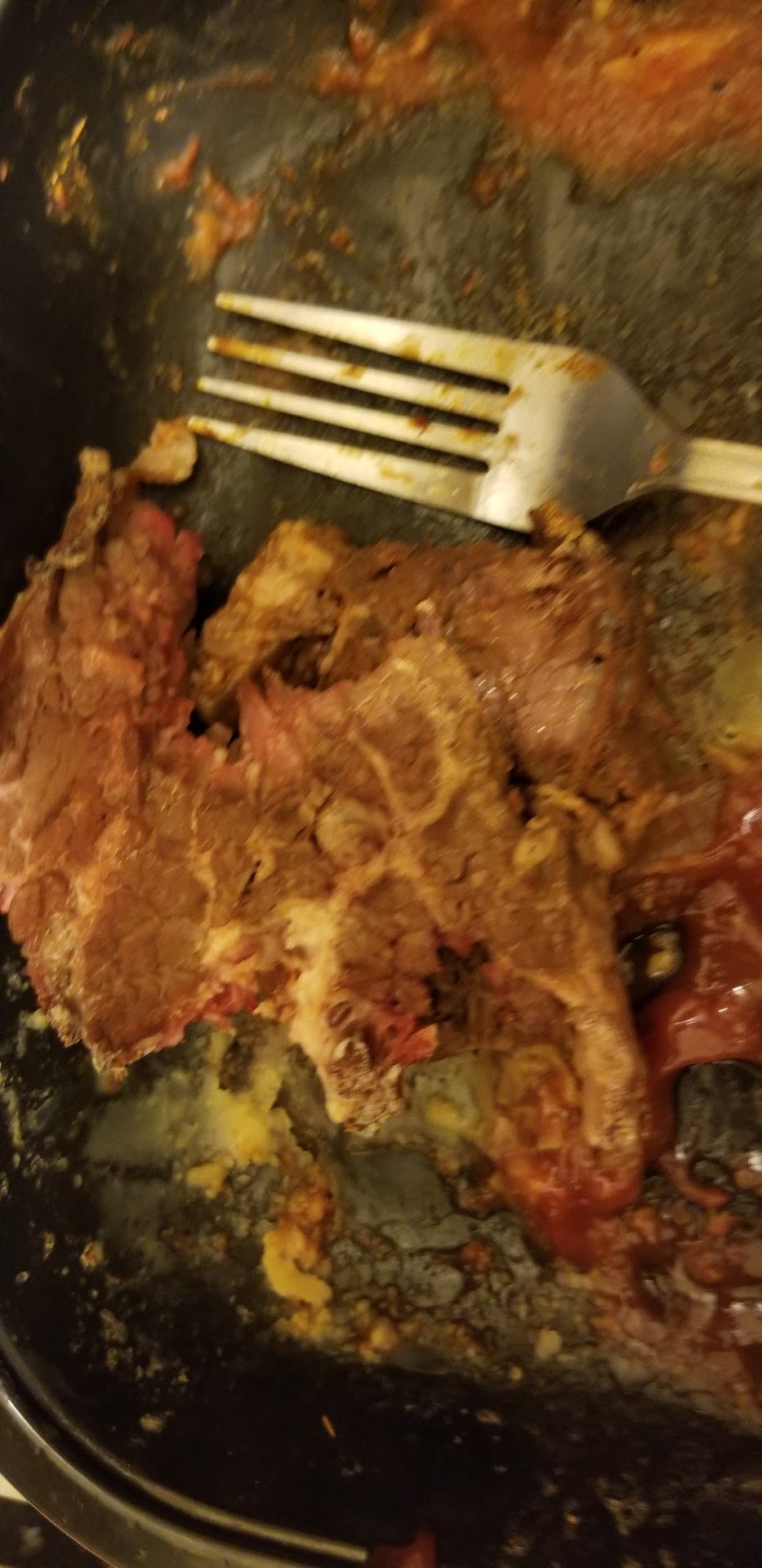 It took 4 butter pats, all of the sour cream, the rest of the herbed butter from the bread, a great deal of salt, pepper, and parmesan to get the potato edible. The cocktail sauce was very horseradish forward, but I hate cocktail sauce and horseradish, so I don't know what I was thinking.