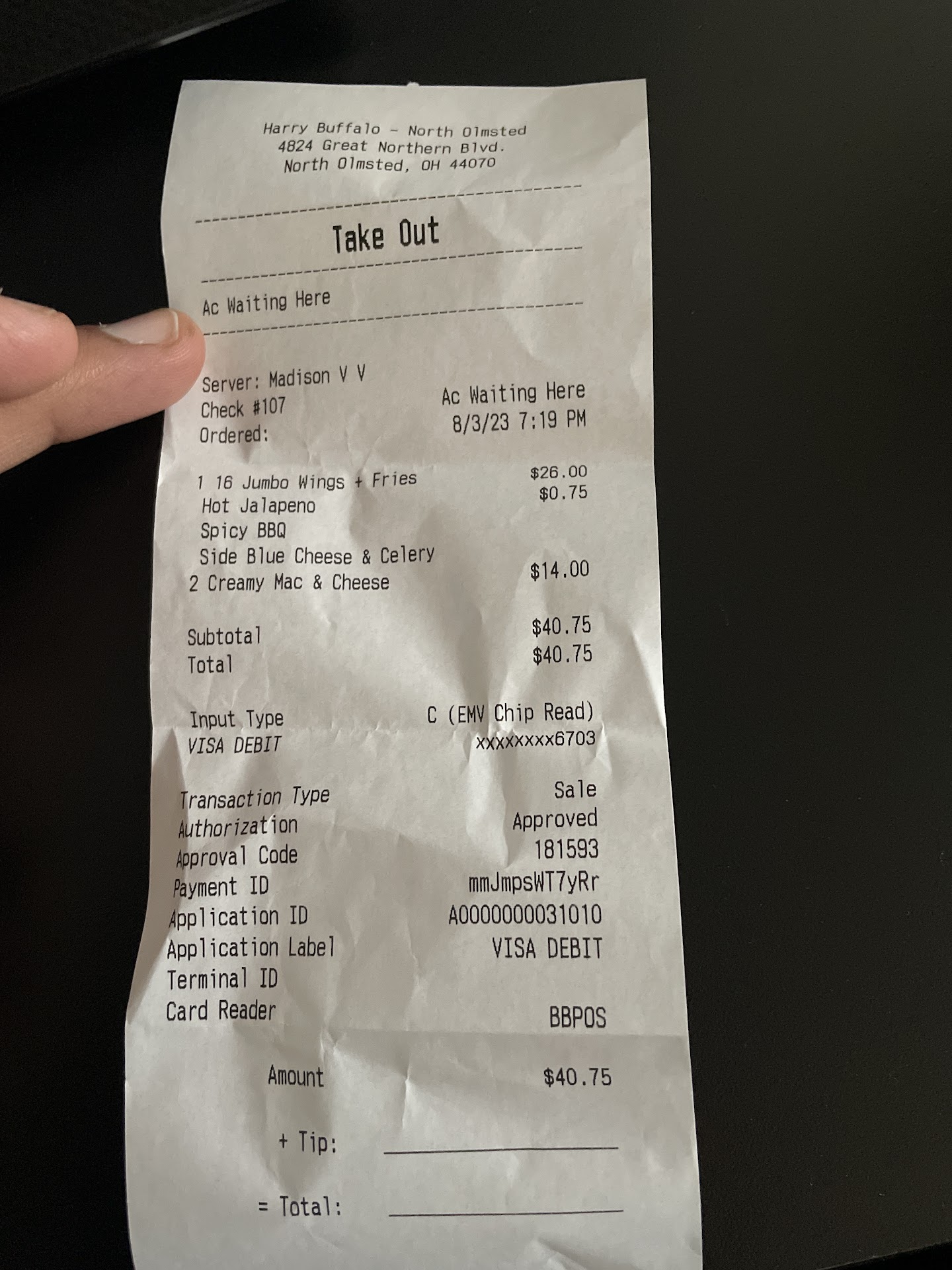 Read moreI went to Harry Buffalo 1/1/2023 with a group of friends. We all got our food but my mac and cheese was cold to the touch. I mentioned it to my friend and he touched the bowl. He agreed that it was cold. I was going to just power through it but when our waitress Brooke came, he asked about it. She was very nice and took it back and got it heated up. It was fairly quick because there weren't that many people in at the time we went in. Everything was good until we paid because Brooke was cut early. I didn't tip her, simple as that. My friends on the other hand, did tip her. Another waitress came to serve us after Brooke and we continued to chit chat and whatnot. The hostess came back to the table with the check that I already paid for and questioned me on the service. I let her know what happened and she placed the check on the table. She then tells me that this made Brooke very distressed and upset. She looked over to where Brooke was and she was crying. I told her that I was finished ordering effective at that moment. I have never had that happen to me. So she walks away and gathered with the other waitresses and talked for awhile with them glancing at our table. It was so uncomfortable that my friend that verified that the mac and cheese was cold tried ordering something but even our own waitress didn't show back up for up for a while. He had to get up and order something at the bar. He then left an additional tip. I told him that he didn't need to do that, I decided not to tip. I have never seen anyone do that before. It...
