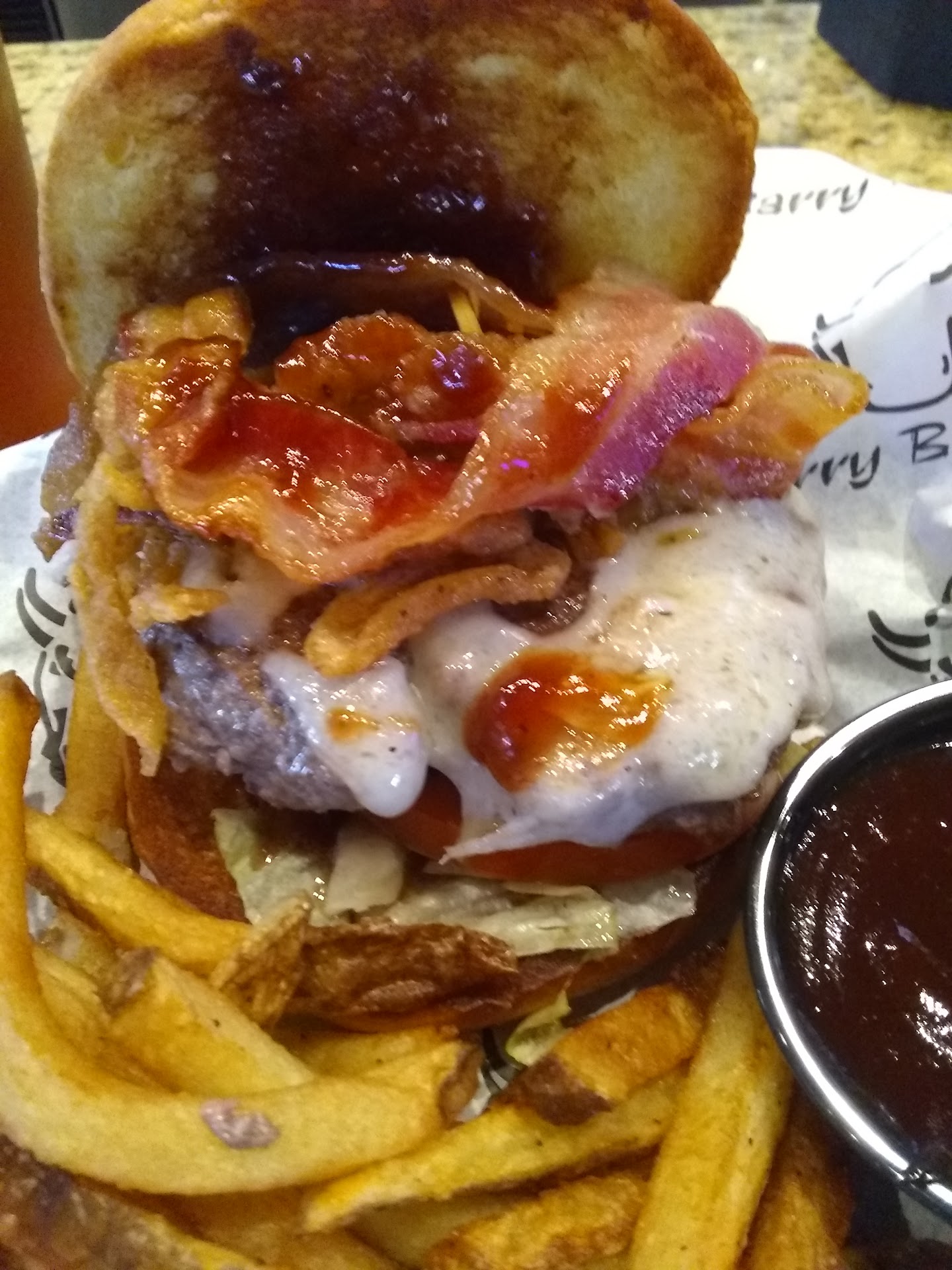 I personally ordered chips and salsa as an app that took over 20 minutes to recieve with the 3 burgers and other meal we ordered coming out about 2 minutes later (all three burgers were MR)... I only ordered these due to the fact of how hungry I was thinking that chips and salsa takes almost no time to prepare. Another patron at the bar ordered food 5 or so minutes after us and received his chicken wings at the same time I got my chips and salsa. Two of the burgers we had were Bison that was very bland in flavor in my opinion. We never received silverware until having to ask for it and between 4 people got a total of 4 napkins.