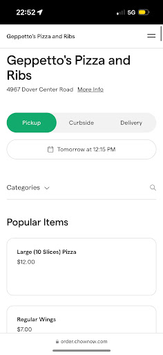 Ā Ā Ā Read moreIf you advertise a special online, you should honor it. āWeāre not Geppettoās, weāre KCās.ā Funny, because when you go to the Geppettoās website, the address of KCās is listed. Honor your ads. Clearly states $9.99 for a pepperoni Four-Corners Pizza, was charged $20.00 total. And $4 per topping when the website says $1.60 each?? Wings are also listed at $7.00 for 5, was charged $8.00. Word of advice: donāt screw over the people that live in the neighborhood. Get...