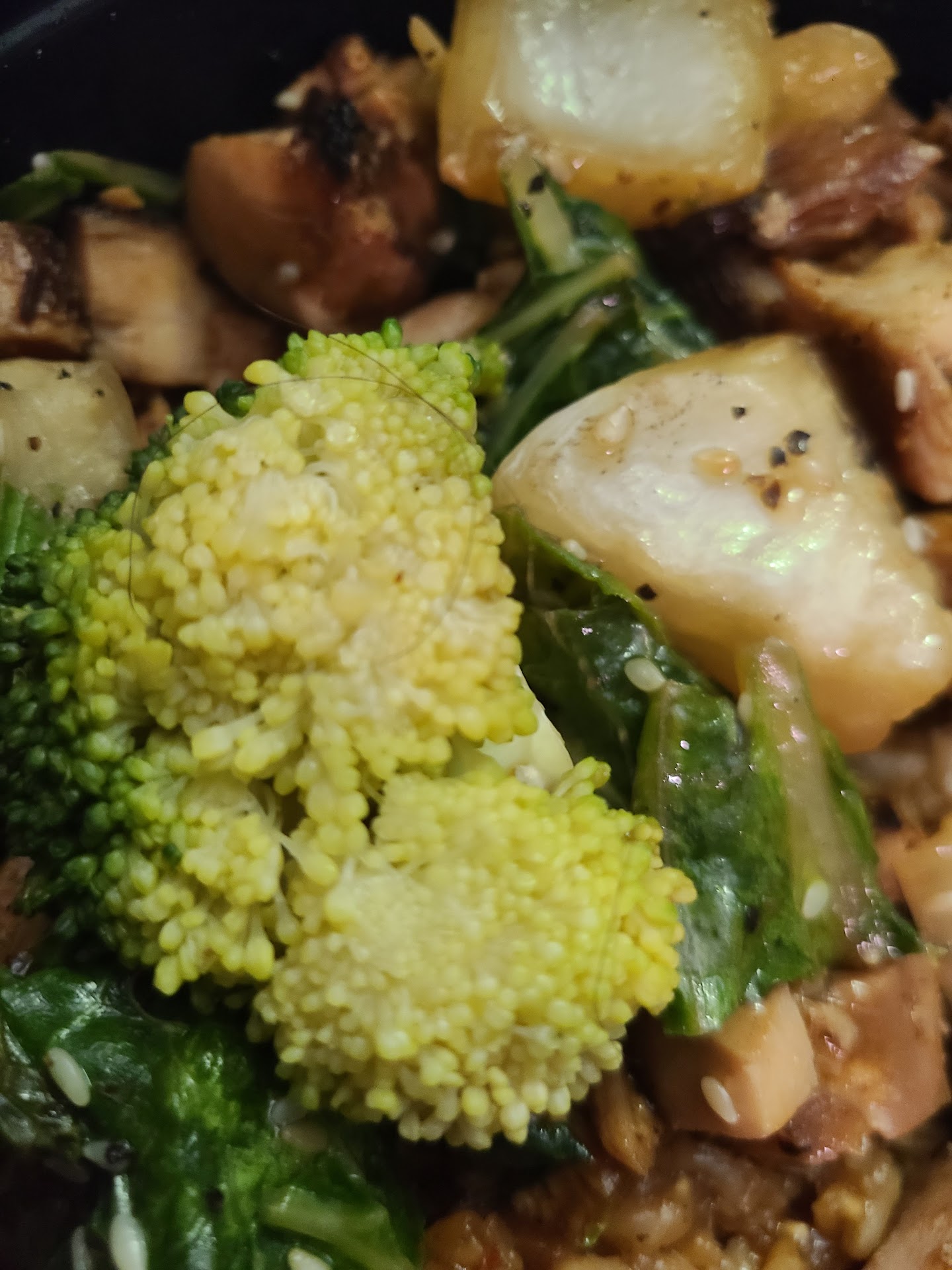 Read moreLiterally disgusting. It smelled nice when I walked in, but the bar, food area with all the ingredients was so dirty with sauce and old food. It was like dry and crusty so it hadn't been cleaned in a while. I also watched one of the workers grab a dirty wok from a pile of dirty dishes that had old crunchy burnt noodles on it and bring it TO THE GRILL AND BEGIN COOKING IN IT! The food itself (I only tried eating it bc I paid for it) was not great. When I asked for 2 sauces I assumed the person would do half and half or a normal amount, but my bowl was like 99% sauce so I had about 5 bites and threw it away. And the best part was I got horrible, painful FOOD POISONING the next day. I know it was from this place bc I've been doing intermittent fasting and this was literally all I ate besides a sweet potato. Moral of the story, HARD pass on this gross place unless you want to risk food poisoning.