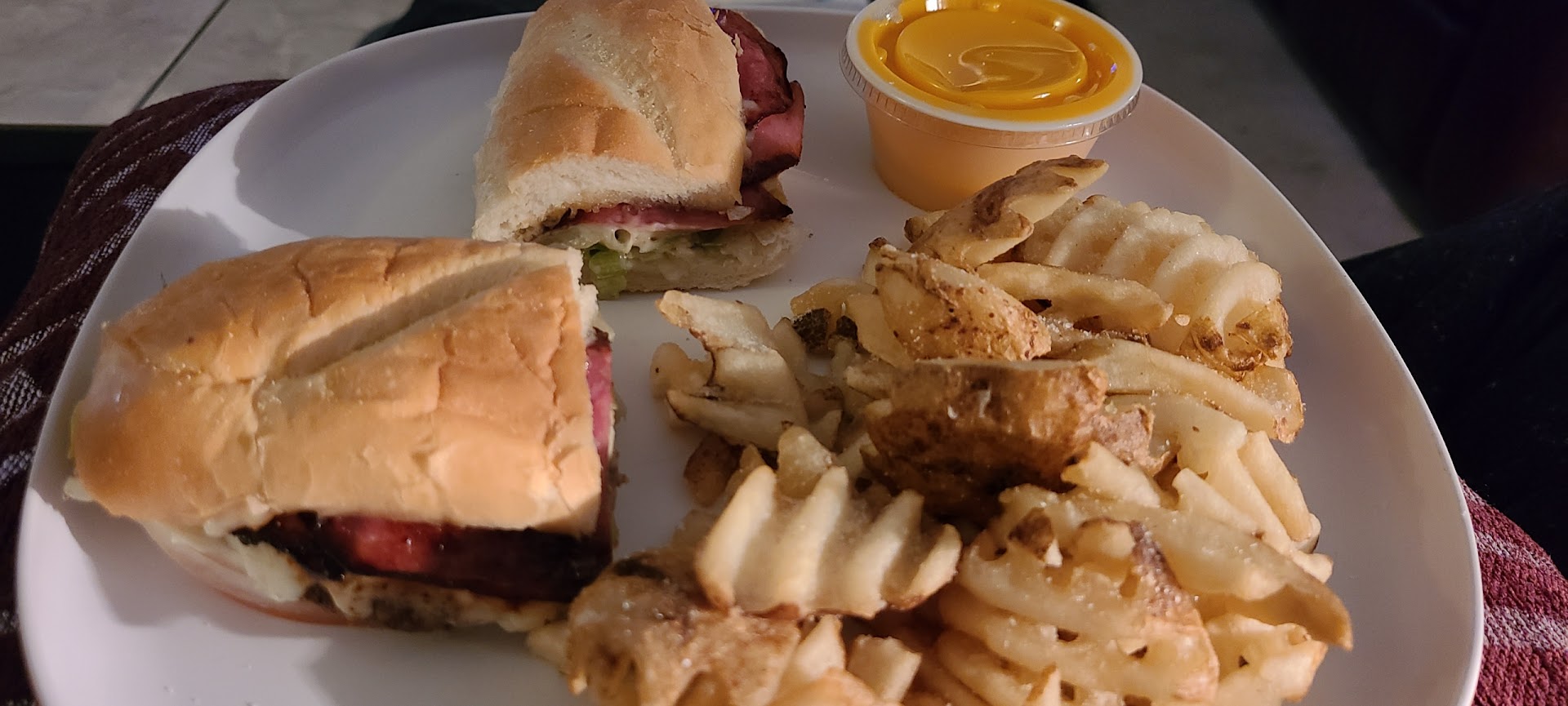I also got waffle fries (they call them waffers) with cheese sauce to dip it in (my first time dipping in cheese).