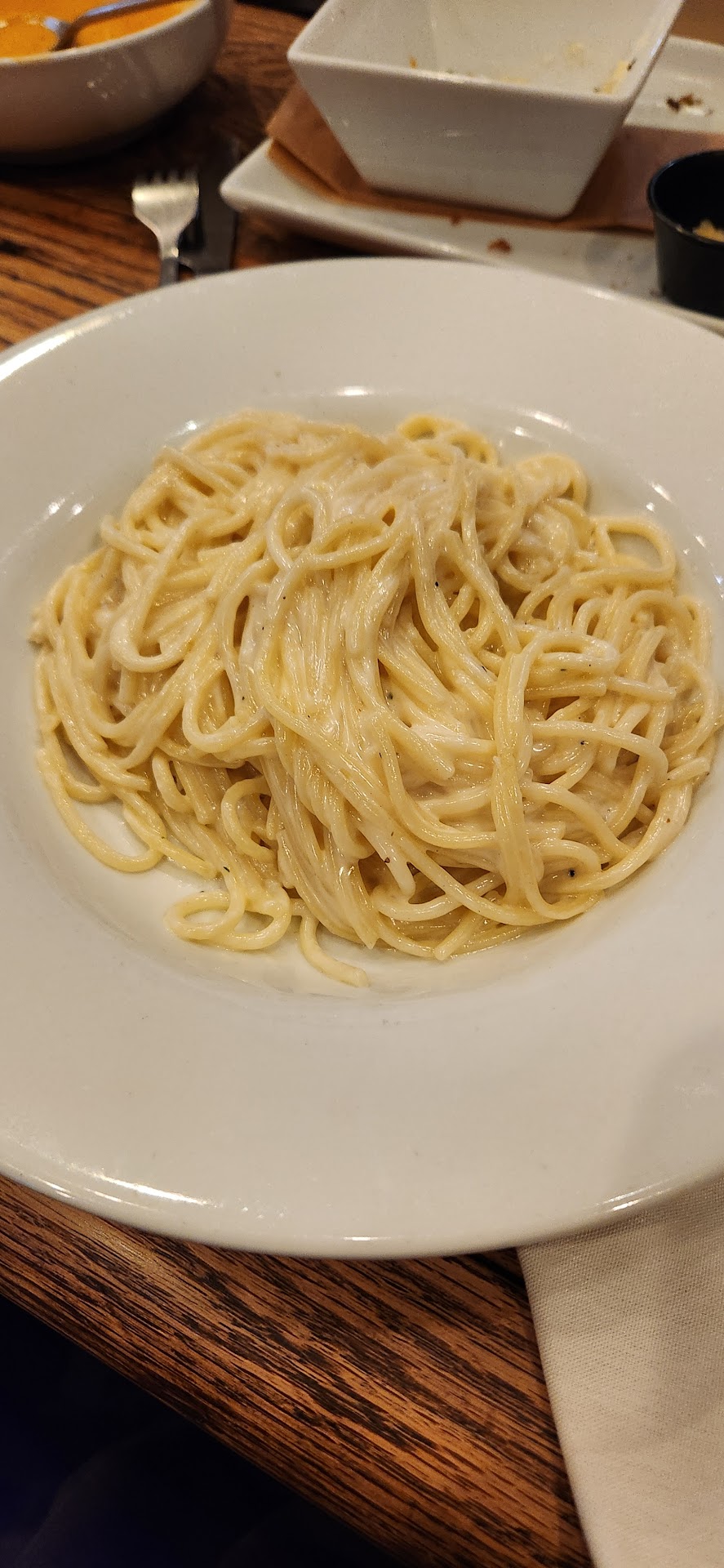 Read moreI came here yesterday on Christmas. It was reservation only so we found 3 spots at the bar. We ordered drinks. The Bartender cut his hand in the midst of making my drink and continued to touch it while he held a bloody napkin on his hand. It was honestly disgusting. He didn't even wash his hands. He hands me my drink and then proceeds to grab stirrer straws and put them in my wine glass. (Yuck) We ordered our food. The bar area started to clear out and was empty for about 30 minutes or more. (Now leaving PILES of dirty dishes at the bar and surrounding tables. Nobody was clearing them) After a bit we received our appetizers. My mother got a cold Lobster Bisque. They didn't even attempt to warm it up before bringing it out. We sent it back only for it to come back boiling.... Seriously? What is wrong with this place? More people crowded into the bar seats and ordered their food. Their food came out before ours. We questioned where our food was and the Bartender said he'd go check. He finally came out with our food. (After waiting over an hour) I ordered fettuccine Alfredo. He placed spaghetti noodles in front of me with Alfredo sauce. We mentioned it and he said they ran out of fettuccine noodles. They never once told me this or asked if I'd like a different noodle. They automatically gave me spaghetti noodles, which absolutely do not go well with Alfredo sauce. It was horrendous. I then saw the lady next to us got stuck with the same thing. She was livid as well and said it was disgusting. To say I'm disappointed is an understatement. I will not be returning. I have no idea why we even paid for my meal, I ended up taking a few bites and leaving it. After waiting an hour and a half for our food, this was not the experience I was hoping for as both my family and myself were in town...