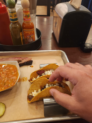 We ordered our dinner right after 5 oâclock and had to wait almost an hour for the food to come, which is unbelievable for a barbecue place. I ordered brisket and two tacos, with a side of rancho beans. The brisket was hard to eat as it was about 80% fat on my plate. The tacos were absolutely terrible. The tortilla had a weird texture to it, and the filling had way more chopped onion than meat. The beans were just gross. My wife had a similar situation with her plate, and both of us left extremely disappointed and still hungry. As we were getting up to leave some of the table next to us made a comment that theyâve been waiting over an hour for their food