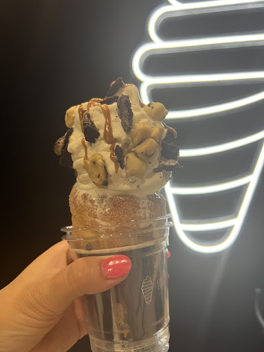 The space itself was bright, clean, and well-organized ā a great atmosphere to enjoy a dessert break. We went with the soft serve in their signature chimney-style cone, and it was absolutely delicious. The cone was freshly baked, beautifully crisp on the outside, and coated with a light cinnamon-sugar dusting that added the perfect flavor balance. Every bite was warm, sweet, and satisfying.
