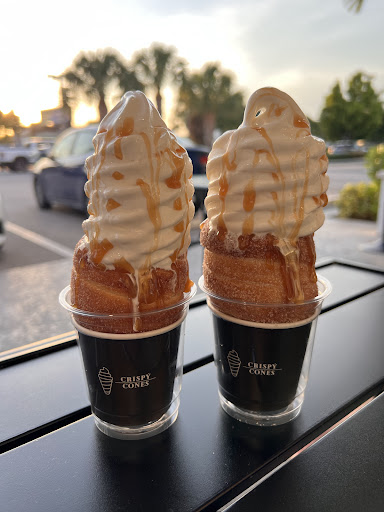 Read moreSuch a fun and unique new place! I originally saw Instagram ads of Crispy Cones and have been dying to try it since! I loved that there was lots of parking and located in a very convenient spot. The shop inside was clean and fit the theme great. I loved that you place your whole order and pay with the cashier instead of doing an assembly line style order. They have lots of spreads and toppings to choose from. My fiancé and I chose the classic cinnamon sugar cone with vanilla soft serve and caramel drizzle. It was just as amazing as I hoped it would be! I also loved that they serve it in a double cup with a spoon to prevent dripping. For reference, we paid $18.38 total. We are excited...
