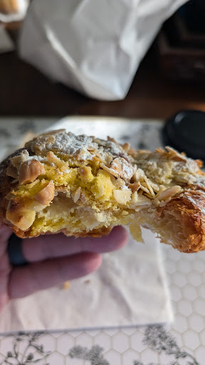 Tried this place for the first time. I had high hopes. They were dashed. Quiche was overcooked (burnt) and the consistency was one of curdled eggs. The almond croissant was also overcooked (burnt) and bitter, and the almond paste inside had baked solid. This is not how it should be. The coffee wasn't very good (they don't grind beans fresh before making espresso, but use pods similar to a Keurig). All in all, very mediocre for premium prices.
