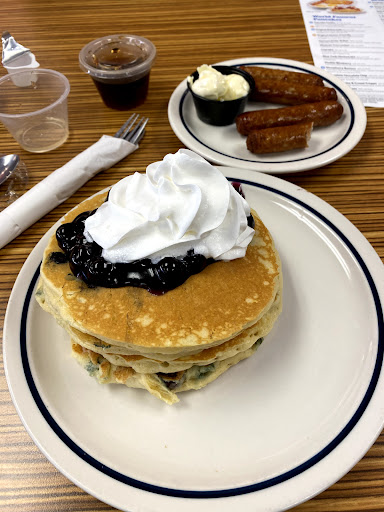 I wanted to leave, but they found us another table quickly, so in we went. We mostly ordered breakfast stuff. The food was standard IHOP fare, perfectly tolerable. The service was a different story. Our waitress apparently could not comprehend a basic drink order; we asked for water for everybody, she brought a few glasses and then disappeared for 15 minutes, we had to ask her for the rest of our drinks when she came back to take the food order. We never bothered asking for refills. Two people in our party ordered grits and they took 45 minutes to come out, everyone else was done with their meals by the time they arrived. The waitress brought the check without asking if we wanted anything else.