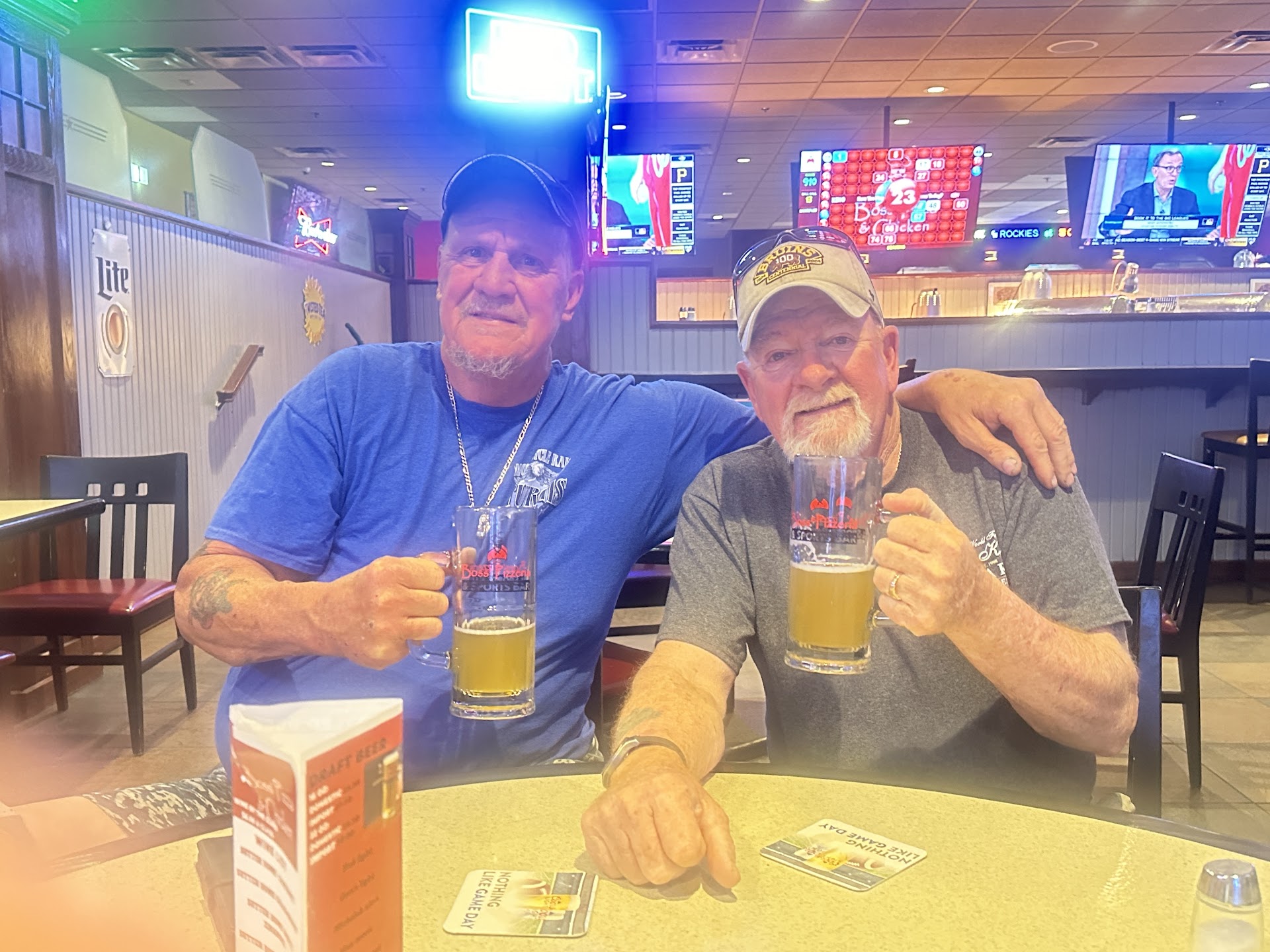 He insisted on getting a large (or extra large?) 'Bossage' pizza, but personalized it by adding EVERYTHING else he liked. (His hometown calls it the 'House Special' which had several extra toppings, extra meat, extra veggies, extra cheese, etc.) The server let him know the price before ordering. He didn't mind the extra price because he had been driving all day and was starving (his words!) and he would take any leftovers on the road with him.
