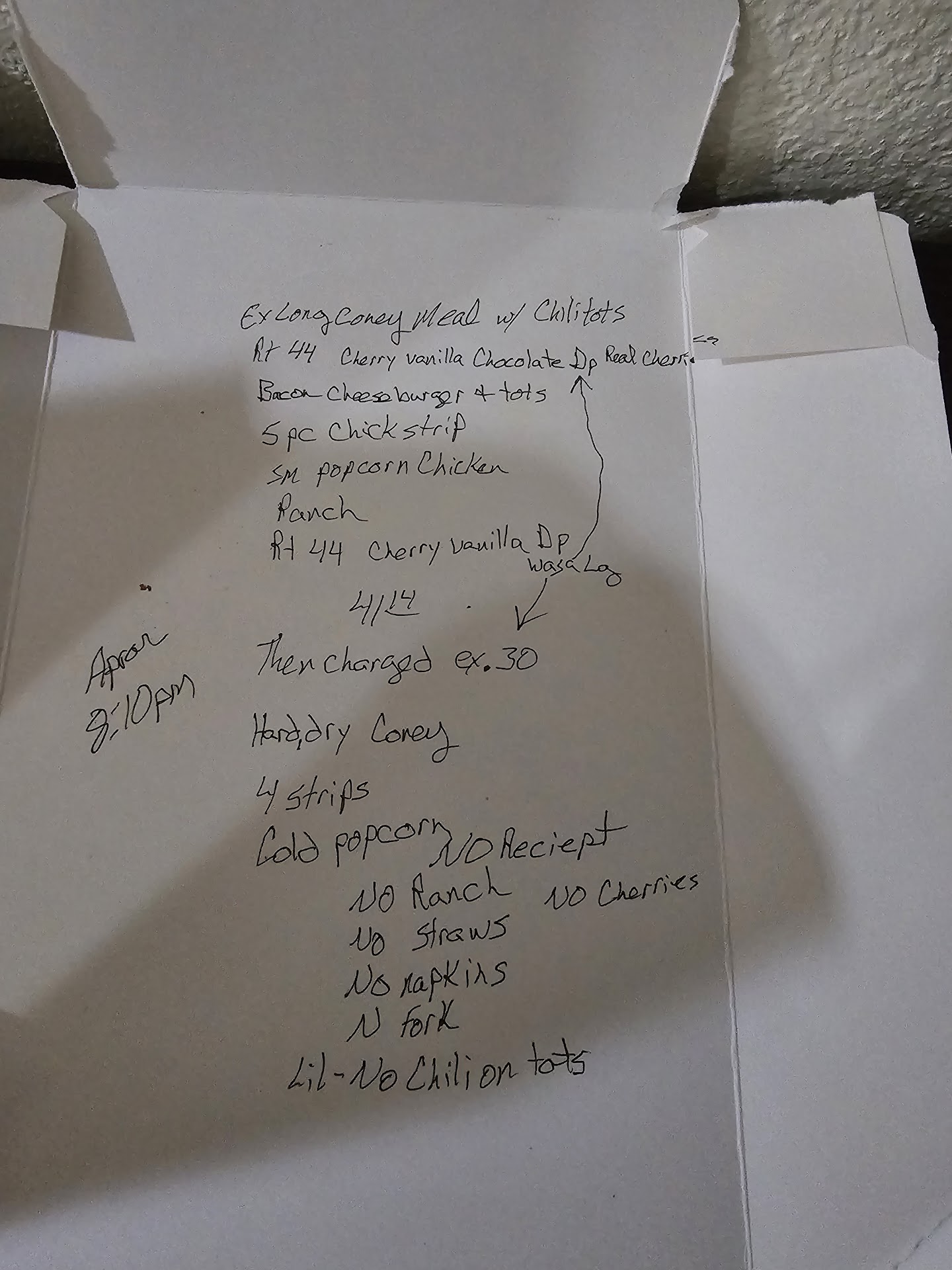 Worst customer service experience Iāve ever experienced. My family is traveling home from Colorado - we have a 14 hour drive. We stopped at sonic since it is right off the highway. We ordered several combo meals as appetizer foods & milkshakes. We first parked to order, pressed the button several times & never got a response. After 10 minutes, we decided to go through the drive thru. There were 2 cars ahead of us. We repeated our order several times & waited in the drive thru for almost 40 minutes. By the time we got to the pickup window, the worker who looked like he rolled around outside & hasnāt showered in weeks says our total was over $40, hands us 2 shakes and told us to have a good day. My husband told him that we ordered food & should have a total of 4 drinks. The guy closes the window while my husband is mid sentence & is still confused when he opened the window back up. That repeated itself at least 2 other times. My husband told him what should have been on our order & the guy starts reading off the receipt while digging his dirty non gloved fingers through the bag of food he said was ours. We then mentioned how the order still wasnāt correct & how he was just digging through our food with his dirty hands so he gets frustrated, closes the window & begins speaking to an older lady next to him. The older lady comes to the window saying we need to pay an additional $9+ for the drinks that apparently werenāt rang up initially. My husband said he just read off the receipt the combo meals we ordered, the lady proceeds to throw our bag down on the counter hard enough where I could see fries fall out of the bag & walked away. We sat next to the window that was closed for almost 5 minutes before some younger lady with long brown hair who I believe is the manager named Marissa or Melissa tells us that they are refusing to serve us or theyāre going to call the authorities. At this point, Iāve had enough & my husband is trying to give back the 2 shakes we didnāt order back to them. They refused to take the drinks back so he set them on the outside bricks of the drive thru window. They had already charged our card for the over $40 order so we asked the younger lady if they were going to refund the order since we never received food nor drinks. The young lady said she was going to refund the money & when we asked for a receipt she slams the drive thru window closed and we can see & hear her bitching to the other workers about it. By the time we were pulling out of the drive thru, there were over 8 cars wrapped around the building for the drive thru. We checked the bank account after we left & went to another food place, they not only charged for the $40 order but also charged an additional $16 for something else.